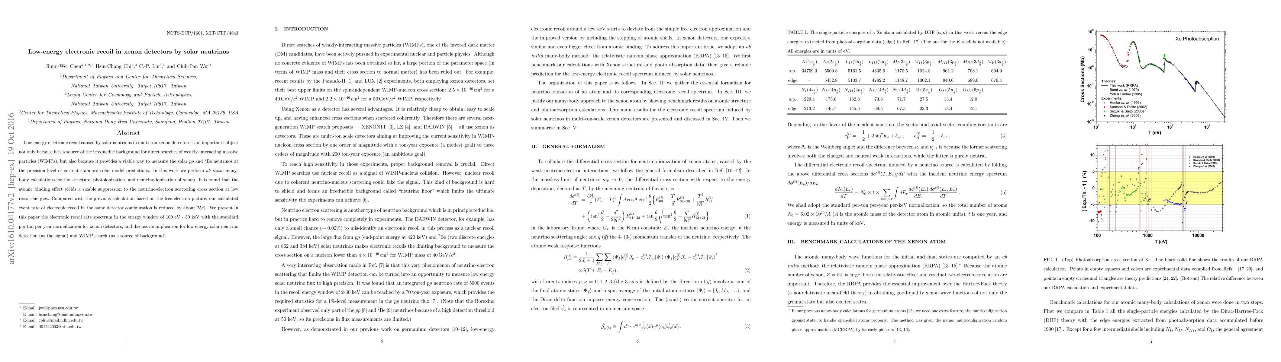 Low-energy electronic recoil caused by solar neutrinos in multi-ton xenon detectors is an important subject not only because it is a source of the irreducible background for direct searches of weakly-interacting massive particles (WIMPs), but also because it provides a viable way to measure the solar $pp$ and $^{7}\textrm{Be}$ neutrinos at the precision level of current standard solar model predictions. In this work we perform $\textit{ab initio}$ many-body calculations for the structure, photoionization, and neutrino-ionization of xenon. It is found that the atomic binding effect yields a sizable suppression to the neutrino-electron scattering cross section at low recoil energies. Compared with the previous calculation based on the free electron picture, our calculated event rate of electronic recoil in the same detector configuration is reduced by about $25\%$. We present in this paper the electronic recoil rate spectrum in the energy window of 100 eV - 30 keV with the standard per ton per year normalization for xenon detectors, and discuss its implication for low energy solar neutrino detection (as the signal) and WIMP search (as a source of background).