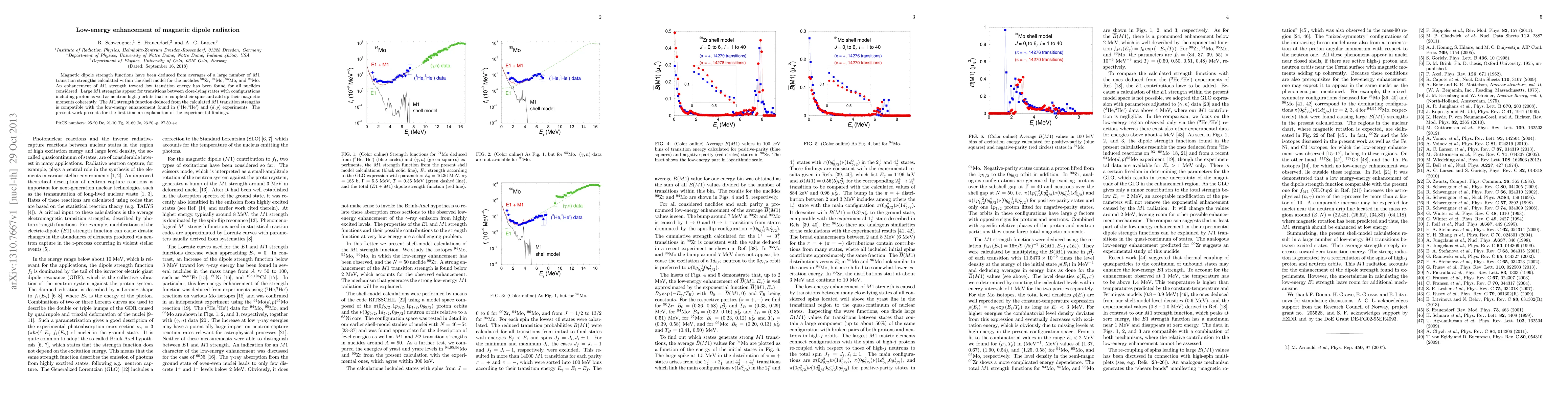 Researchers found a 'low-energy enhancement' in magnetic dipole radiation for certain nuclides, suggesting that low-energy transitions involve coherent addition of spins from high-j orbits.