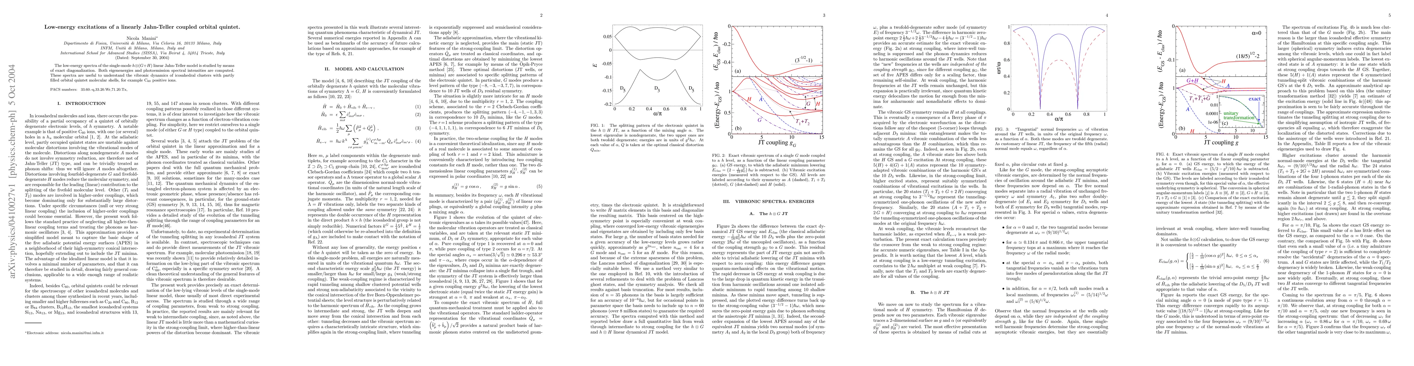 Researchers studied low-energy excitations of a linear Jahn-Teller model using exact diagonalization to understand vibronic dynamics in icosahedral clusters with filled orbital quintet shells, like C60 positive ions.