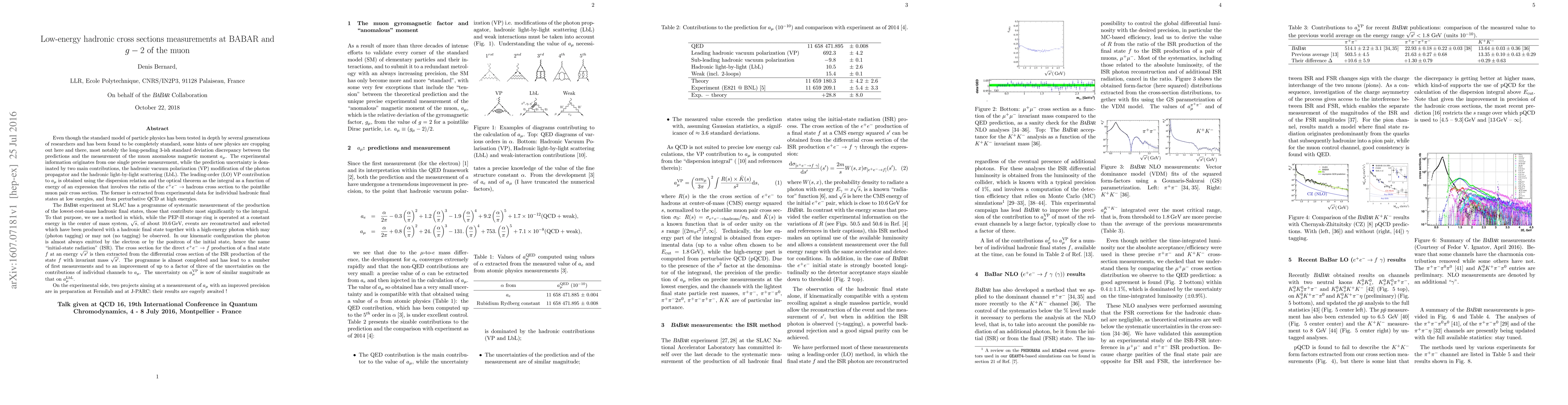 The BABAR experiment measures low-energy hadronic cross sections to determine the hadronic vacuum polarization contribution to the muon anomalous magnetic moment $a_\mu$. These measurements significantly improve the precision of individual channel contributions to $a_\mu$ by up to a factor of three.