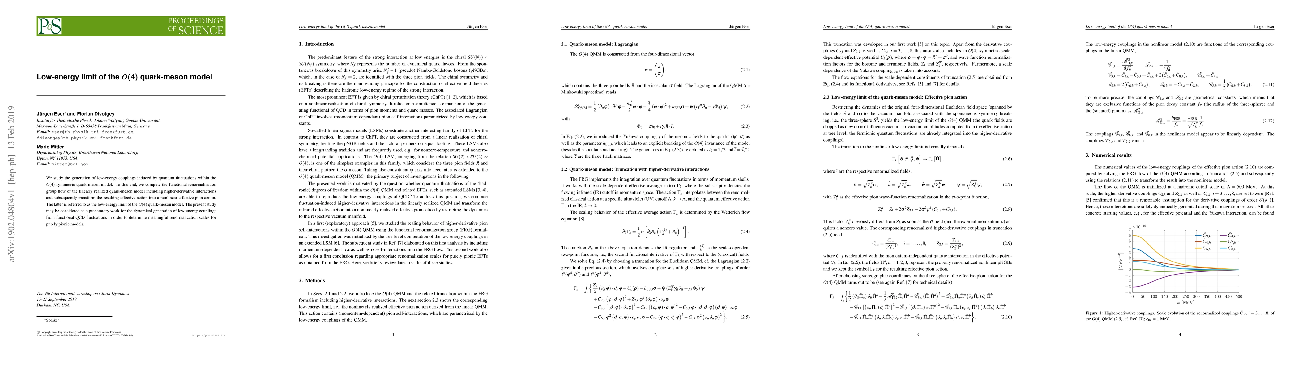 This paper investigates the generation of low-energy couplings in the O(4) quark-meson model via quantum fluctuations, employing the functional renormalization group to derive the effective pion action. This work sets the stage for determining renormalization scales in purely pionic models from functional QCD fluctuations.