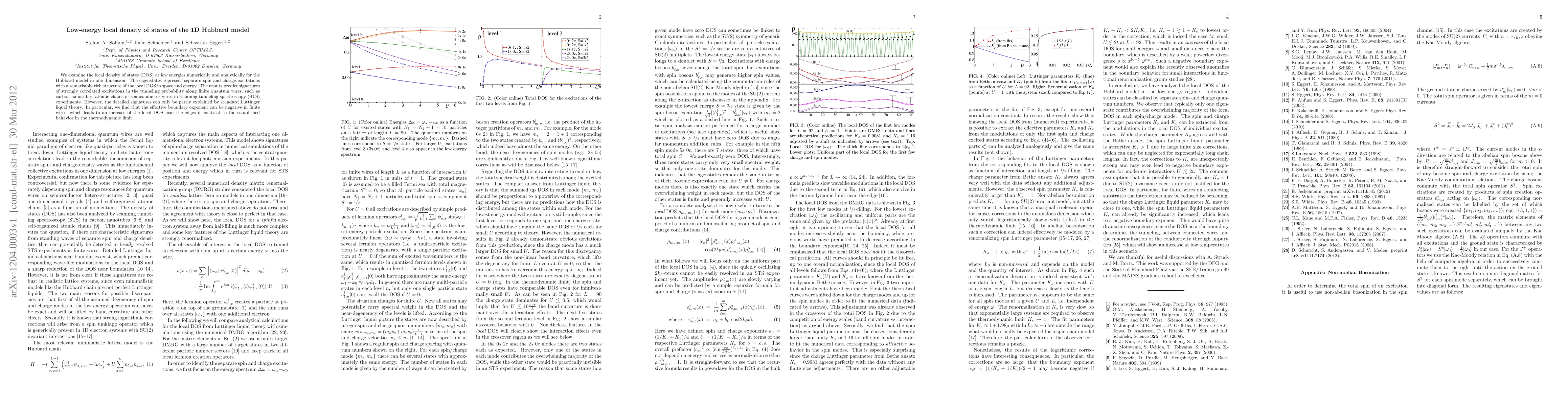 We examine the local density of states (DOS) at low energies numerically and analytically for the Hubbard model in one dimension. The eigenstates represent separate spin and charge excitations with a remarkably rich structure of the local DOS in space and energy. The results predict signatures of strongly correlated excitations in the tunneling probability along finite quantum wires, such as carbon nanotubes, atomic chains or semiconductor wires in scanning tunneling spectroscopy (STS) experiments. However, the detailed signatures can only be partly explained by standard Luttinger liquid theory. In particular, we find that the effective boundary exponent can be negative in finite wires, which leads to an increase of the local DOS near the edges in contrast to the established behavior in the thermodynamic limit.