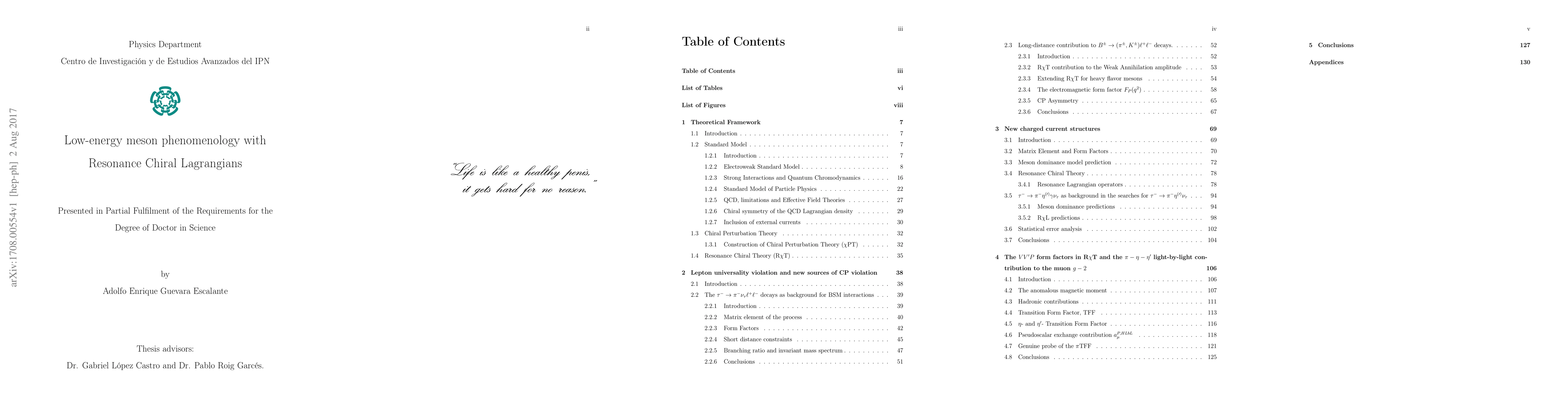 The low energy behaviour of Quantum Chromodynamics makes unreliable an expansion in terms of its coupling strength, since nothing guarantees the convergence of such expansion. To overcomer such difficulty one resorts to Lattice QCD or Effective Field Theories. In this thesis we compute hadronic processes at low energies, using Resonance Chiral Lagrangians as the effective theory of QCD. The processes we study are important background on the search for Lepton Flavor Violation, Lepton Universality Violation, Lepton Number Violation, Second Class Currents and study the Hadronic light-by-light contribution to the Anomalous Magnetic Moment of the muon. All such processes are of great interest since all of them are to be studied with an increased precision in the very near future by different experiments.