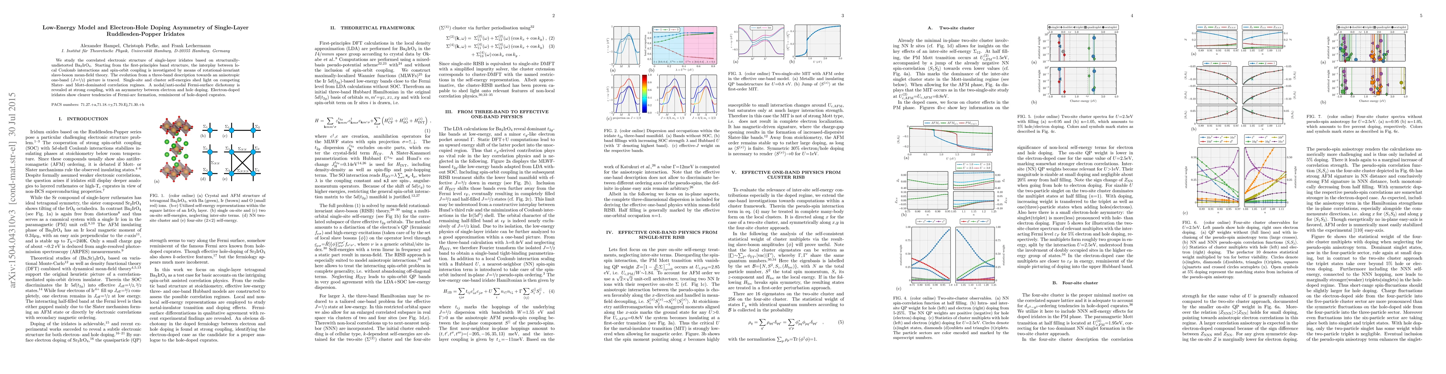 Researchers studied single-layer iridates using computational methods to understand their electronic structure and doping behavior, revealing asymmetry between electron and hole doping and similarities with cuprates.