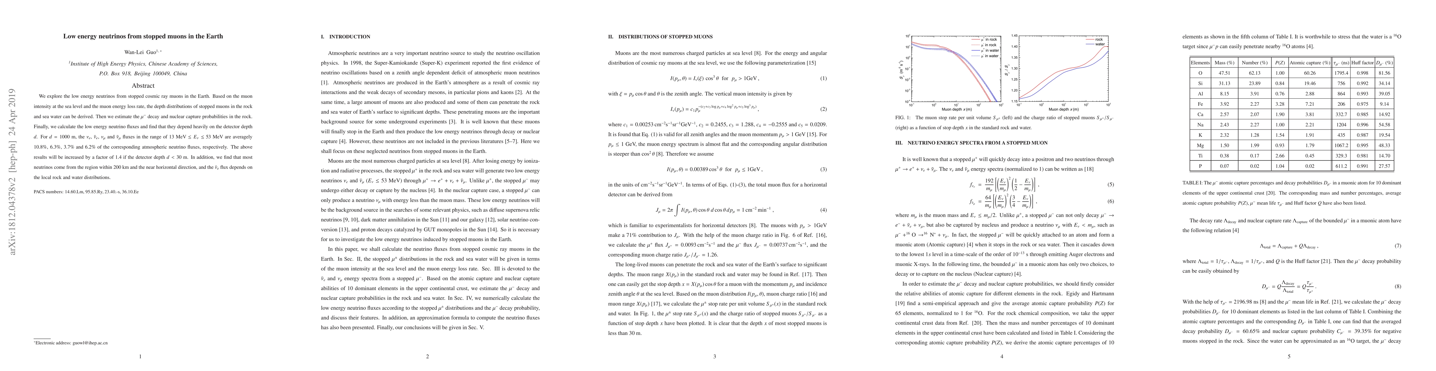We explore the low energy neutrinos from stopped cosmic ray muons in the Earth. Based on the muon intensity at the sea level and the muon energy loss rate, the depth distributions of stopped muons in the rock and sea water can be derived. Then we estimate the $\mu^-$ decay and nuclear capture probabilities in the rock. Finally, we calculate the low energy neutrino fluxes and find that they depend heavily on the detector depth $d$. For $d = 1000$ m, the $\nu_e$, $\bar{\nu}_e$, $\nu_\mu$ and $\bar{\nu}_\mu$ fluxes in the range of 13 MeV $ \leq E_\nu \leq$ 53 MeV are averagely $10.8 \%$, $6.3\%$, $3.7 \%$ and $6.2 \%$ of the corresponding atmospheric neutrino fluxes, respectively. The above results will be increased by a factor of 1.4 if the detector depth $d < 30$ m. In addition, we find that most neutrinos come from the region within 200 km and the near horizontal direction, and the $\bar{\nu}_e$ flux depends on the local rock and water distributions.