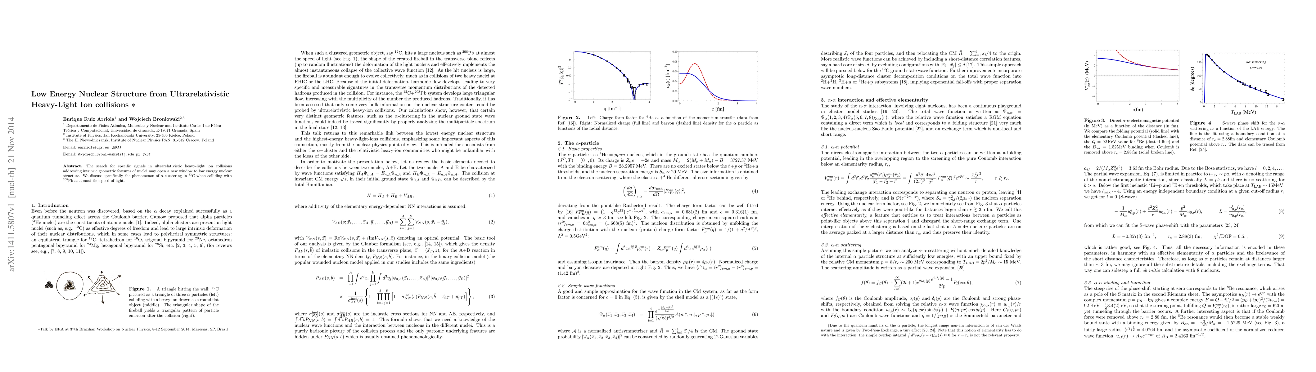The search for specific signals in ultra-relativistic heavy-light ion collisions addressing intrinsic geometric features of nuclei may open a new window to low energy nuclear structure. We discuss specifically the phenomenon of {\alpha}-clustering in $^{12}$C when colliding with $^{208}$Pb at almost the speed of light.