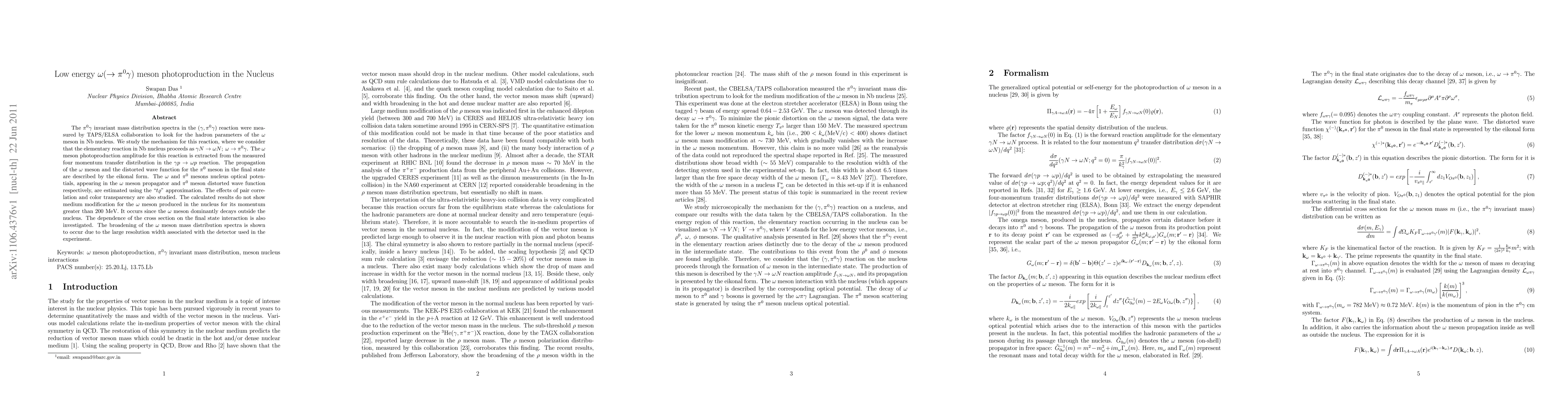This research provides insights into the in-medium properties of the ω meson, which is crucial for understanding meson behavior in nuclear environments, and it contributes to the theoretical framework for interpreting experimental data from nuclear reactions involving mesons.