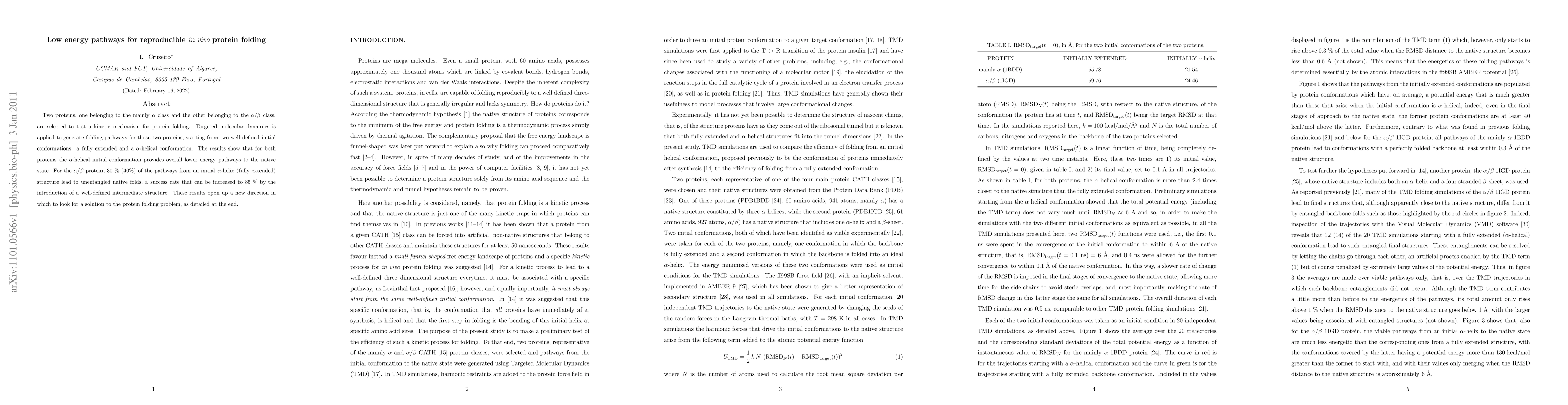 Two proteins, one belonging to the mainly alpha class and the other belonging to the alpha/beta class, are selected to test a kinetic mechanism for protein folding. Targeted molecular dynamics is applied to generate folding pathways for those two proteins, starting from two well defined initial conformations: a fully extended and a alpha-helical conformation. The results show that for both proteins the alpha-helical initial conformation provides overall lower energy pathways to the native state. For the alpha/beta protein, 30 % (40%) of the pathways from an initial alpha-helix (fully extended) structure lead to unentangled native folds, a success rate that can be increased to 85 % by the introduction of a well-defined intermediate structure. These results open up a new direction in which to look for a solution to the protein folding problem, as detailed at the end.