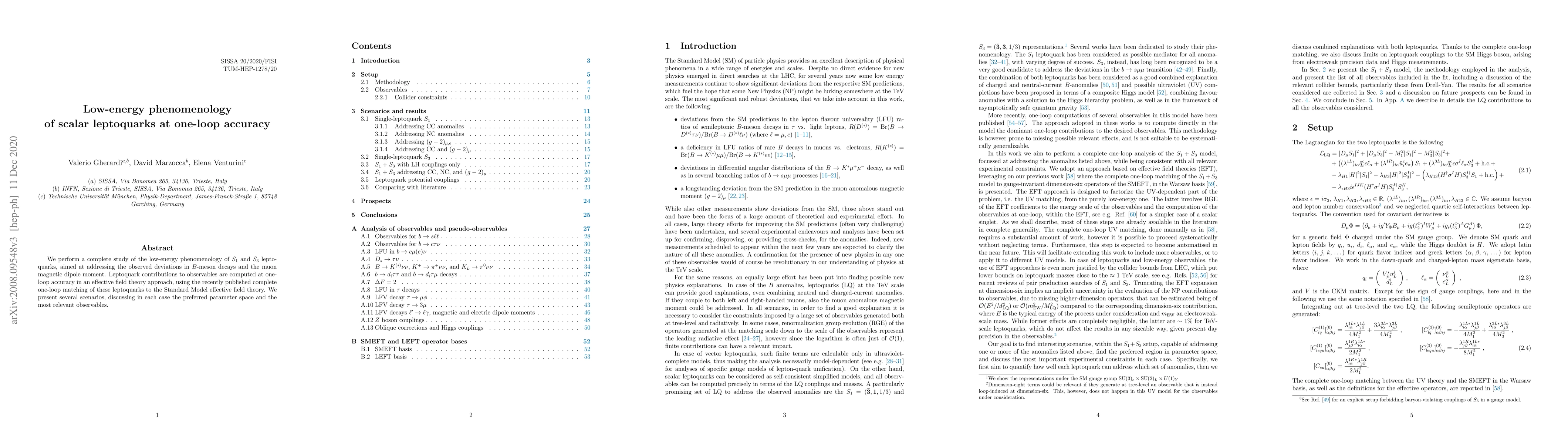We perform a complete study of the low-energy phenomenology of $S_1$ and $S_3$ lepto-quarks, aimed at addressing the observed deviations in $B$-meson decays and the muon magnetic dipole moment. Leptoquark contributions to observables are computed at one-loop accuracy in an effective field theory approach, using the recently published complete one-loop matching of these leptoquarks to the Standard Model effective field theory. We present several scenarios, discussing in each case the preferred parameter space and the most relevant observables.