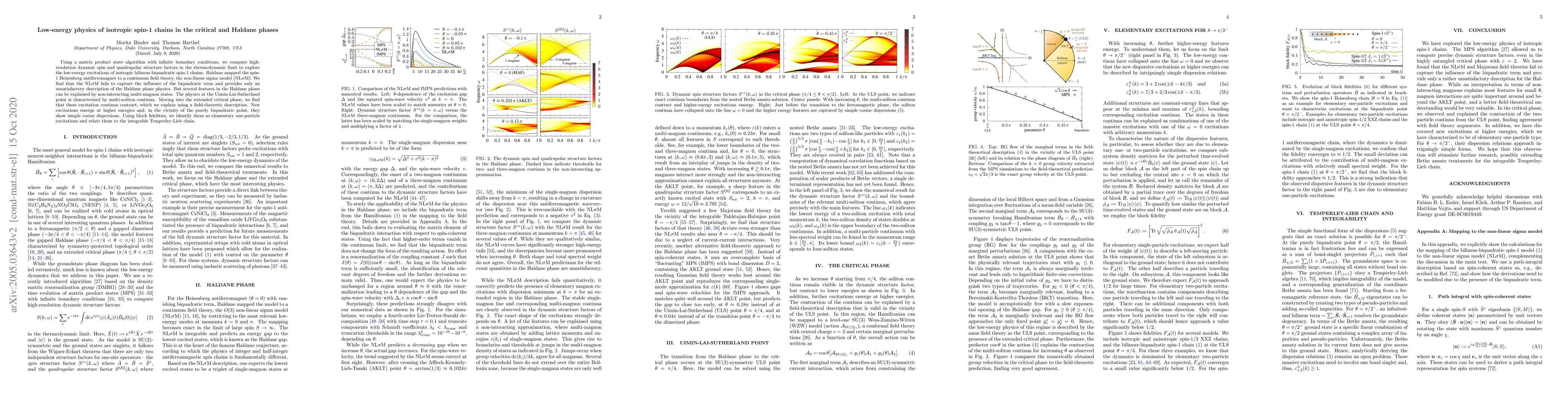 This paper investigates the low-energy physics of isotropic spin-1 chains using a matrix product state algorithm, revealing that the non-linear sigma model inadequately describes the Haldane phase due to the biquadratic term's influence. The study identifies multi-magnon states and soliton continua as key features in the Haldane and critical phases, respectively, and discovers new elementary excitations near the biquadratic point linked to the Temperley-Lieb chain.