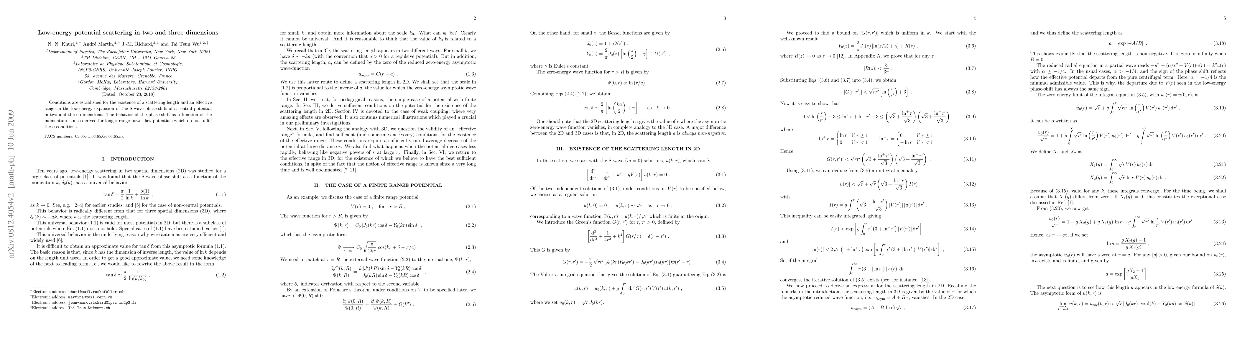 This paper establishes conditions for the existence of scattering length and effective range in low-energy potential scattering for two and three dimensions, and derives the phase-shift behavior for longer-range power-law potentials that do not meet these conditions.