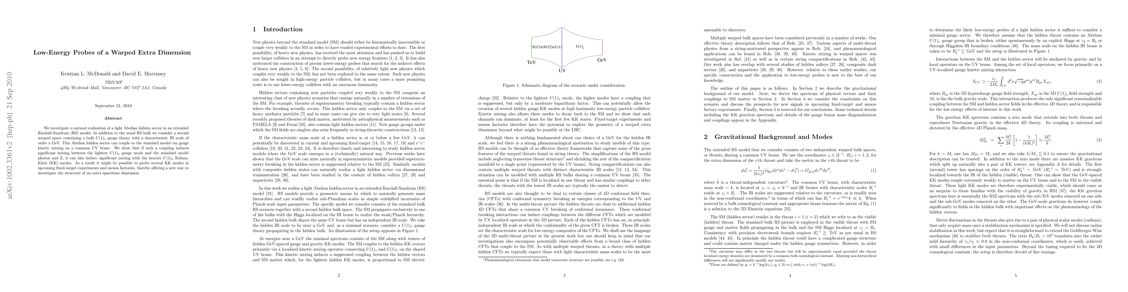 We investigate a natural realization of a light Abelian hidden sector in an extended Randall-Sundrum (RS) model. In addition to the usual RS bulk we consider a second warped space containing a bulk U(1)_x gauge theory with a characteristic IR scale of order a GeV. This Abelian hidden sector can couple to the standard model via gauge kinetic mixing on a common UV brane. We show that if such a coupling induces significant mixing between the lightest U(1)_x gauge mode and the standard model photon and Z, it can also induce significant mixing with the heavier U(1)_x Kaluza-Klein (KK) modes. As a result it might be possible to probe several KK modes in upcoming fixed-target experiments and meson factories, thereby offering a new way to investigate the structure of an extra spacetime dimension.