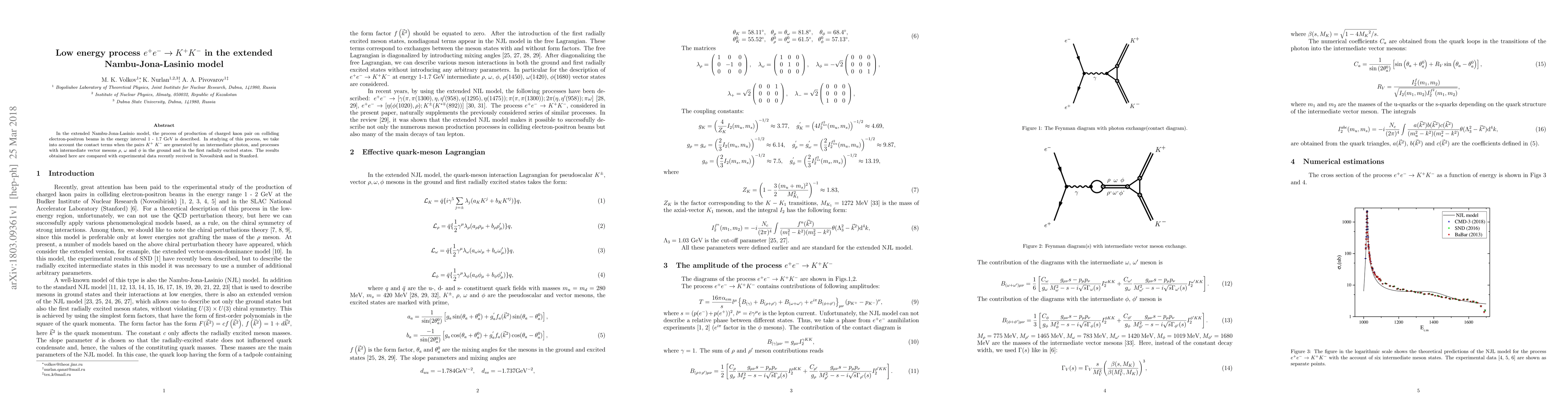This paper investigates the low energy $e^{+}e^{-} \rightarrow K^{+} K^{-}$ process in the extended Nambu-Jona-Lasinio model, considering both contact terms and intermediate vector mesons. Results are compared with recent experimental data from Novosibirsk and Stanford.