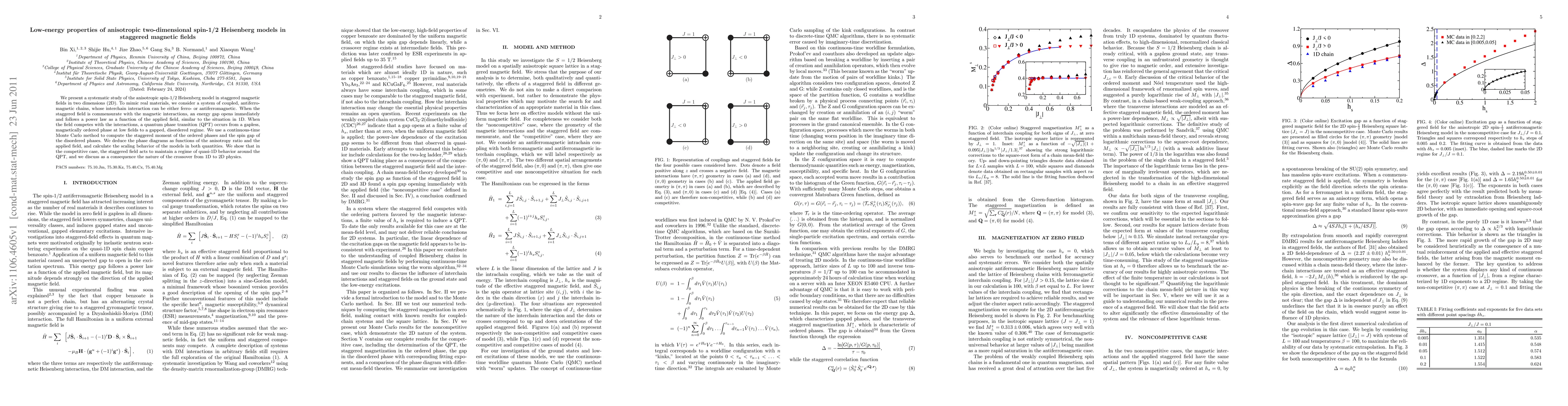This research systematically investigates the low-energy properties of anisotropic 2D spin-1/2 Heisenberg models under staggered magnetic fields. Using Monte Carlo simulations, it reveals how commensurate fields create energy gaps following power laws, while competing fields induce quantum phase transitions from gapless to gapped phases. The study also highlights the role of staggered fields in preserving quasi-1D behavior near transitions, offering insights into the 1D-to-2D crossover in these systems.