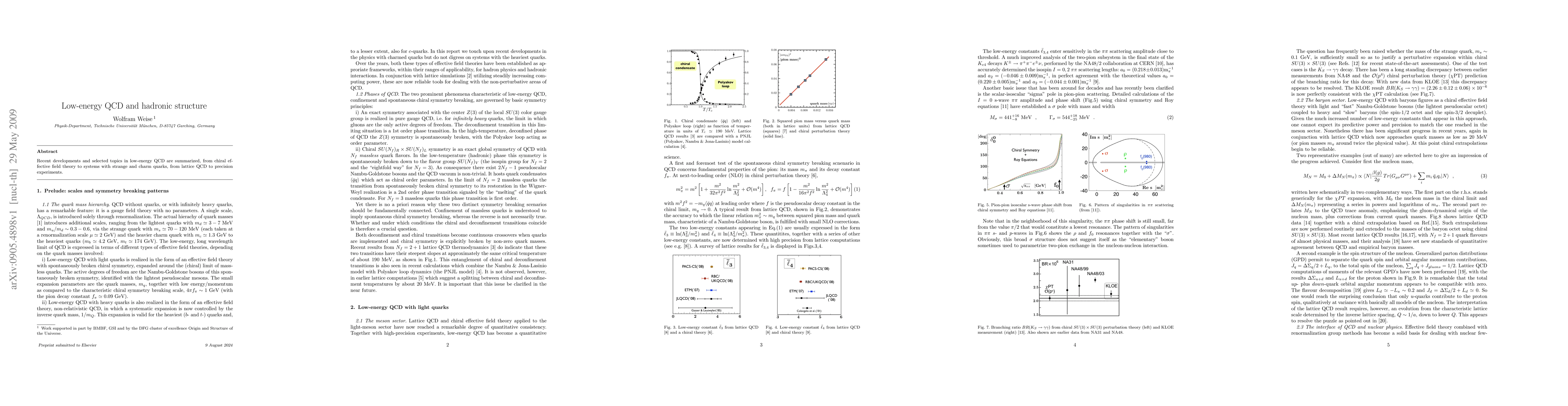 This paper summarizes recent developments in low-energy QCD, covering topics from chiral effective field theory to lattice QCD and precision experiments, highlighting key findings on hadronic structure.