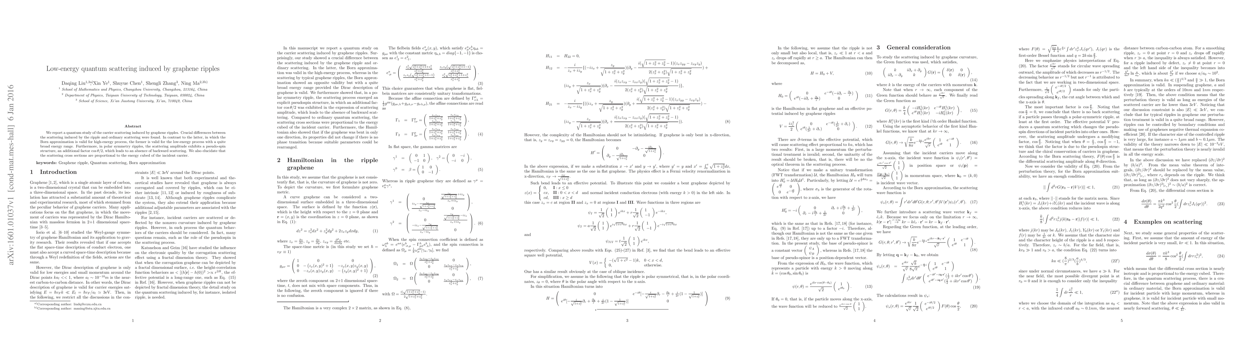 This study investigates quantum carrier scattering in graphene influenced by ripples, revealing distinct scattering mechanisms from ordinary processes, especially valid for low-energy ranges. The ripple-induced scattering shows a pseudo-spin structure and an absence of backward scattering, with cross sections proportional to the cube of the incident carrier's energy.