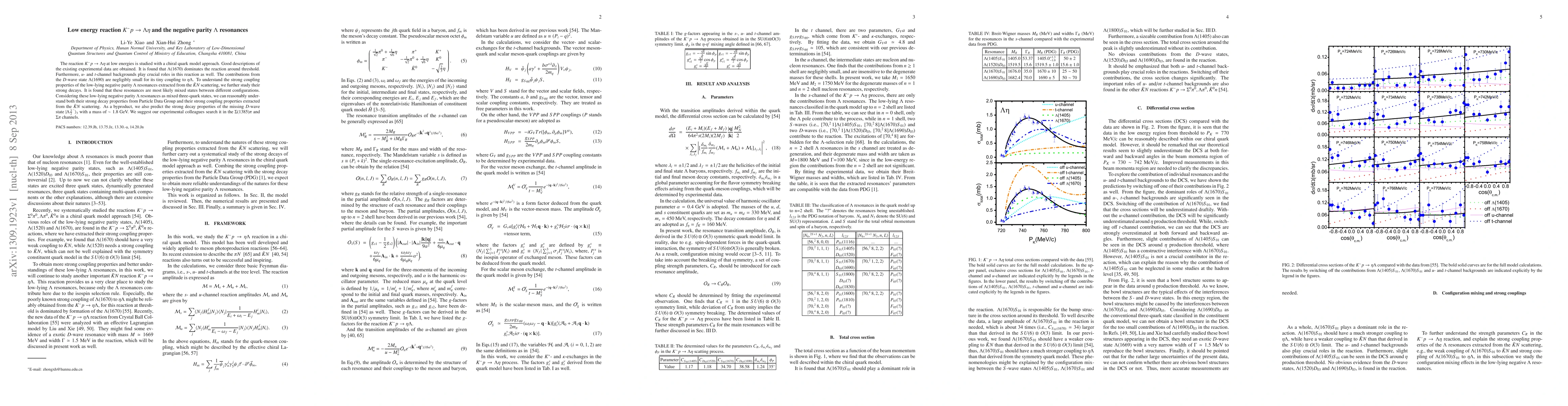 This study uses a chiral quark model to analyze the low-energy reaction $K^-p\rightarrow\Lambda\eta$, finding that $\Lambda(1670)$ dominates near threshold, while $u$- and $t$-channel backgrounds are significant. The research also explores the nature of low-lying negative parity $\Lambda$ resonances, suggesting they are mixed three-quark states that can explain their decay properties and strong coupling behaviors.