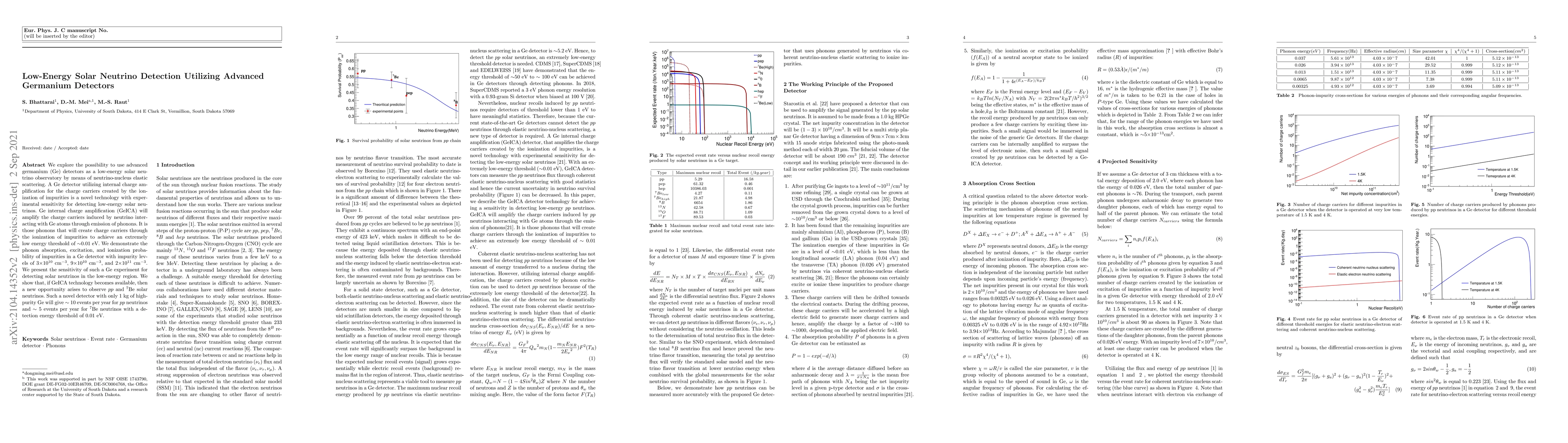 We explore the possibility to use advanced germanium (Ge) detectors as a low-energy solar neutrino observatory by means of neutrino-nucleus elastic scattering. A Ge detector utilizing internal charge amplification for the charge carriers created by the ionization of impurities is a novel technology with experimental sensitivity for detecting low-energy solar neutrinos. Ge internal charge amplification (GeICA) will amplify the charge carriers induced by neutrino interacting with Ge atoms through emission of phonons. It is those phonons that will create charge carriers through the ionization of impurities to achieve an extremely low energy threshold of $\sim$0.01 eV. We demonstrate the phonon absorption, excitation, and ionization probability of impurities in a Ge detector with impurity levels of 3$\times$10$^{10}$ cm$^{-3}$, 9$\times$10$^{10}$ cm$^{-3}$, and 2$\times$10$^{11}$ cm$^{-3}$. We present the sensitivity of such a Ge experiment for detecting solar neutrinos in the low-energy region. We show that, if GeICA technology becomes available, then a new opportunity arises to observe $pp$ and 7Be solar neutrinos. Such a novel detector with only 1 kg of high-purity Ge will give $\sim$ 10 events per year for $pp$ neutrinos and $\sim$ 5 events per year for 7Be neutrinos with a detection energy threshold of 0.01 eV.