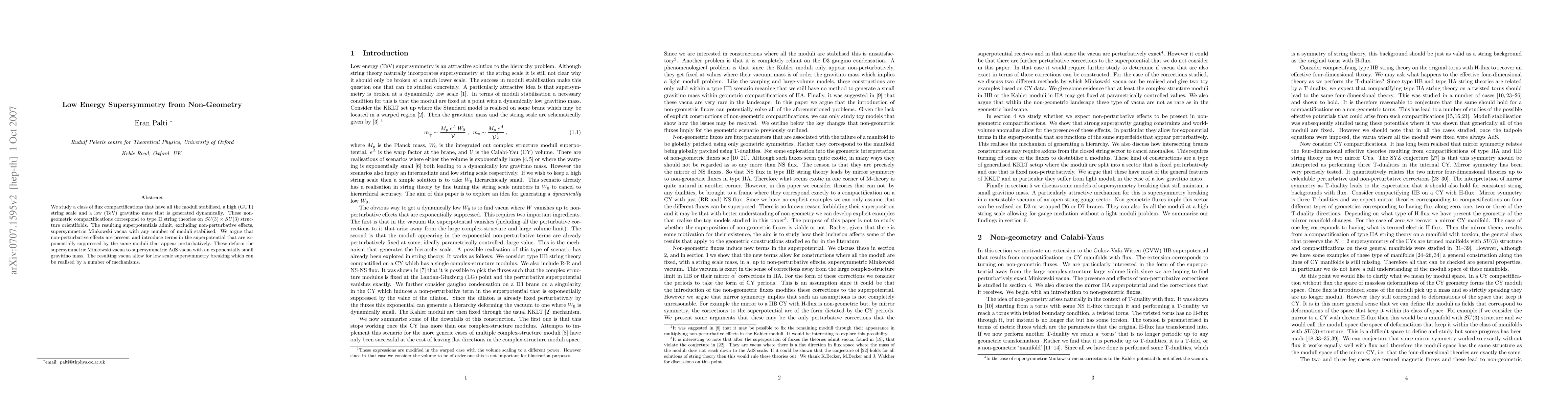 This paper explores flux compactifications in type II string theories that stabilize moduli, leading to a high GUT scale and a dynamically generated low gravitino mass. Non-perturbative effects, which introduce exponentially suppressed terms, deform supersymmetric vacua to AdS vacua, enabling low energy supersymmetry breaking.
