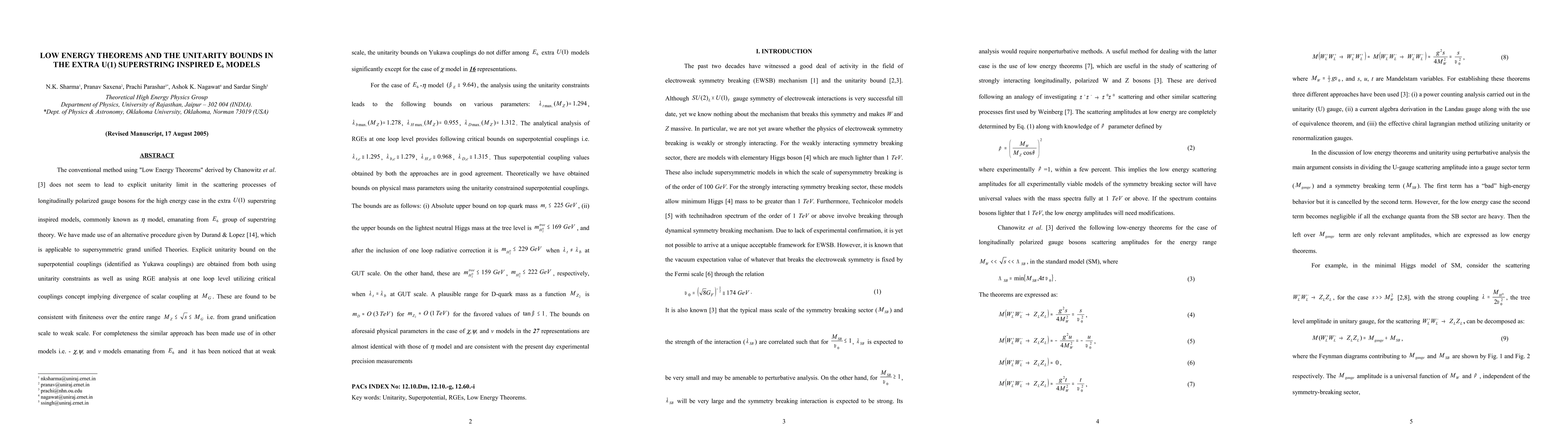 This paper explores the limitations of low energy theorems in establishing unitarity bounds for longitudinally polarized gauge bosons in extra U(1) superstring models derived from E6. An alternative approach, using SUSY GUT and RGE analysis, successfully determines explicit unitarity bounds on Yukawa couplings, consistent across various E6 models except for the chi model in 16 representations.