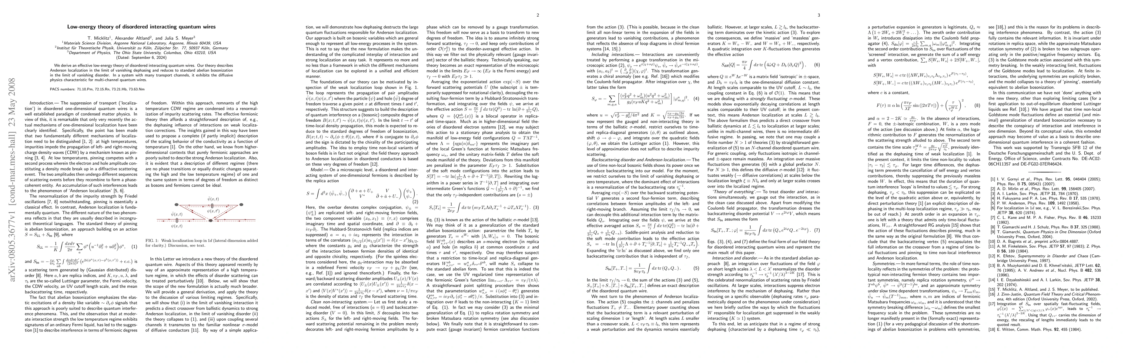The research derives an effective low-energy theory of disordered interacting quantum wires using nontrivial bosonic variables that represent all low-energy processes in the system, providing a unified framework for exploring different localization mechanisms.