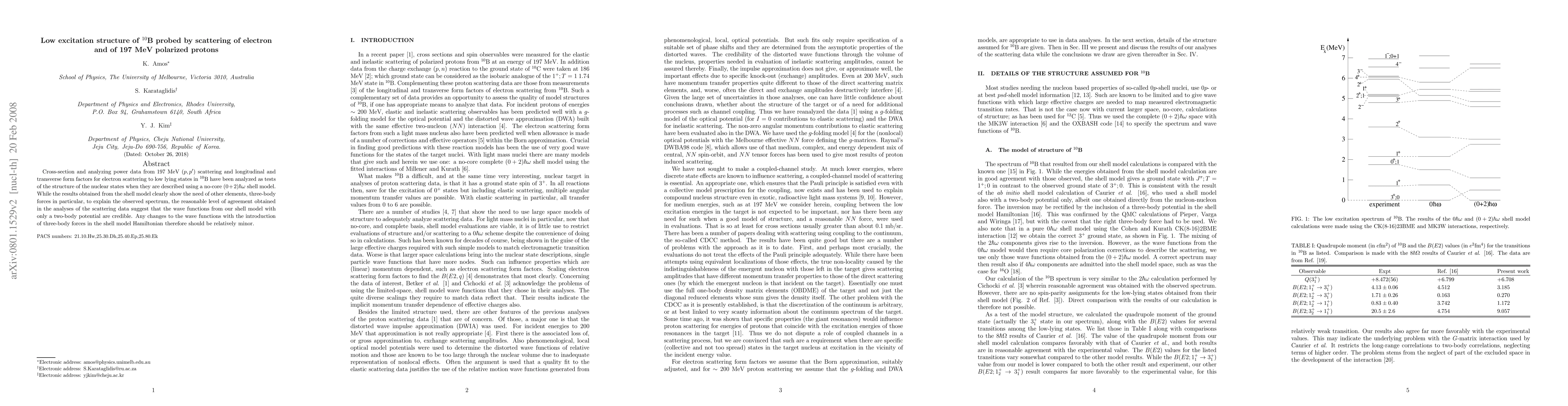 Cross-section and analyzing power data from 197 MeV $(p,p')$ scattering and longitudinal and transverse form factors for electron scattering to low lying states in $^{10}$B have been analyzed as tests of the structure of the nuclear states when they are described using a no-core $(0+2)\hbar\omega$ shell model. While the results obtained from the shell model clearly show the need of other elements, three-body forces in particular, to explain the observed spectrum, the reasonable level of agreement obtained in the analyses of the scattering data suggest that the wavefunctions from our shell model using only a two-body potential are credible. Any changes to the wavefunctions with the introduction of three-body forces in the shell model Hamiltonian should therefore be relatively minor.