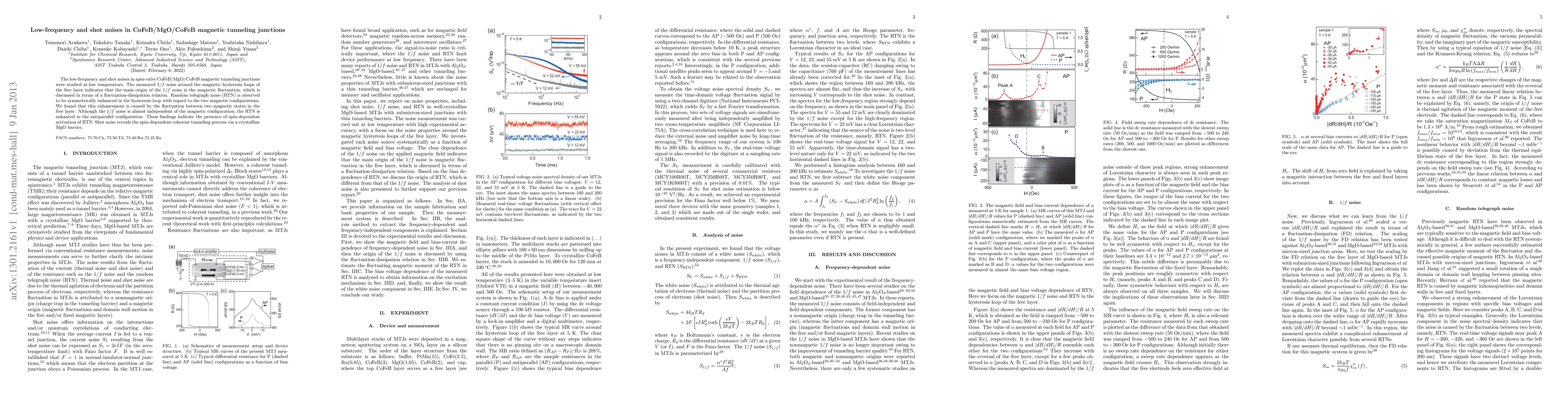 Understanding noise properties in MTJs is crucial for improving device performance and reliability, particularly in low-temperature, low-bias regimes, where coherent tunneling can be observed.