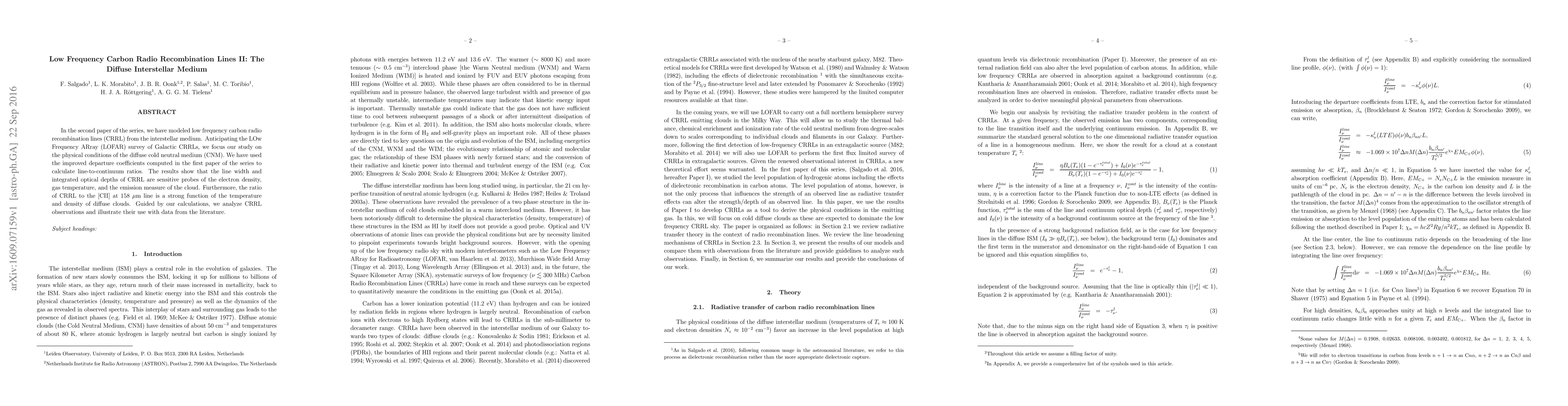 This paper models low frequency carbon radio recombination lines (CRRL) to study the physical conditions of the diffuse cold neutral medium (CNM). The study finds that CRRL line width and optical depths are sensitive to electron density, gas temperature, and emission measure, and that CRRL to [CII] line ratios strongly depend on cloud temperature and density.