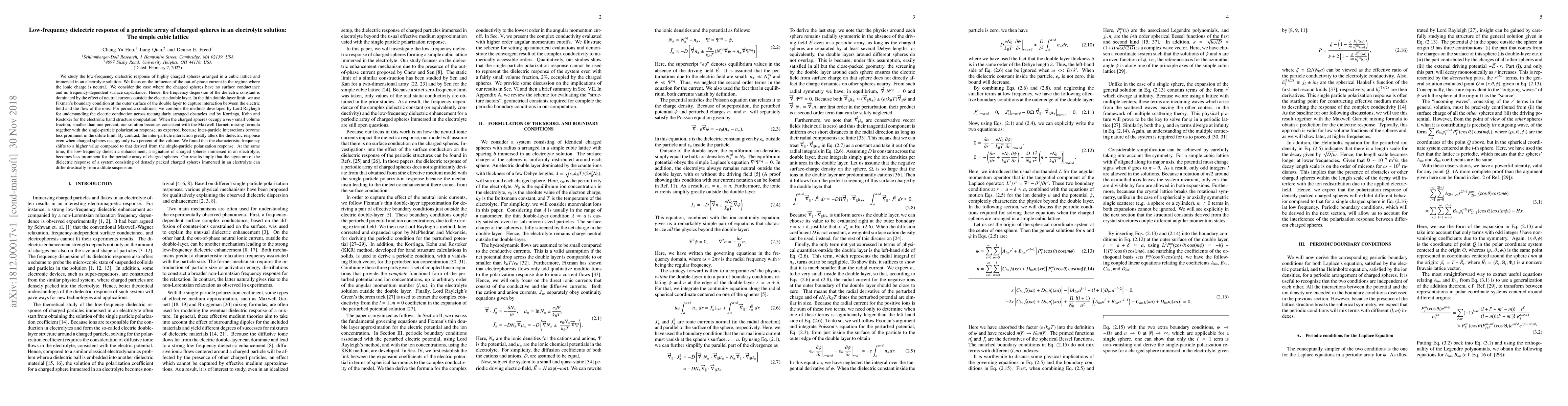 We study the low-frequency dielectric response of highly charged spheres arranged in a cubic lattice and immersed in an electrolyte solution. We focus on the influence of the out-of-phase current in the regime where the ionic charge is neutral. We consider the case where the charged spheres have no surface conductance and no frequency-dependent surface capacitance. Hence, the frequency dispersion of the dielectric constant is dominated by the effect of neutral currents outside the electric double layer. In the thin double-layer limit, we use Fixman's boundary condition at the outer surface of the double layer to capture interaction between the electric field and the flow of the ions. For periodic conditions, we combine the methods developed by Lord Rayleigh for understanding the electric conduction across rectangularly arranged obstacles and by Korringa, Kohn and Rostoker for the electronic band structure computation. When the charged spheres occupy a very small volume fraction, smaller than one percent, our solution becomes consistent with the Maxwell Garnett mixing formula together with the single-particle polarization response, as expected, because inter-particle interactions become less prominent in the dilute limit. By contrast, the inter-particle interaction greatly alters the dielectric response even when charged spheres occupy only two percent of the volume. We found that the characteristic frequency shifts to a higher value compared to that derived from the single-particle polarization response. At the same time, the low-frequency dielectric enhancement, a signature of charged spheres immersed in an electrolyte, becomes less prominent for the periodic array of charged spheres. Our results imply that the signature of the dielectric response of a system consisting of densely packed charged spheres immersed in an electrolyte can differ drastically from a dilute suspension.