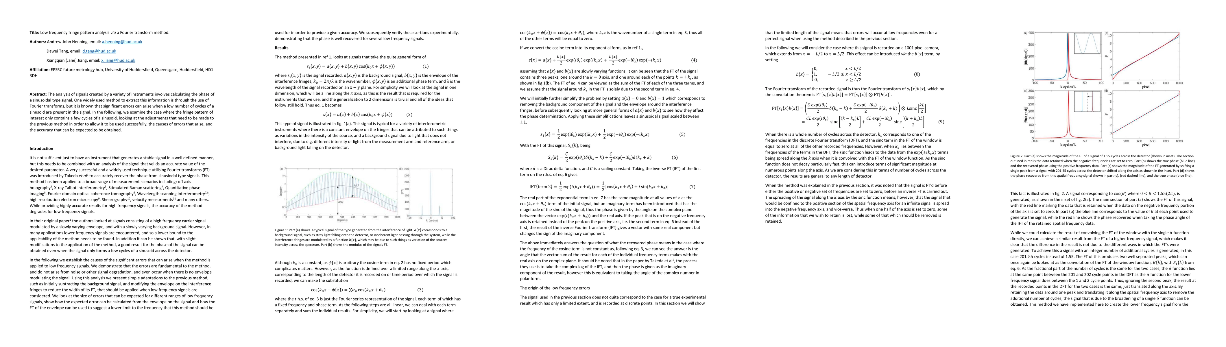 Researchers improved a Fourier transform method to accurately analyze low-frequency fringe patterns with few cycles of a sinusoid, reducing errors and increasing expected accuracy.