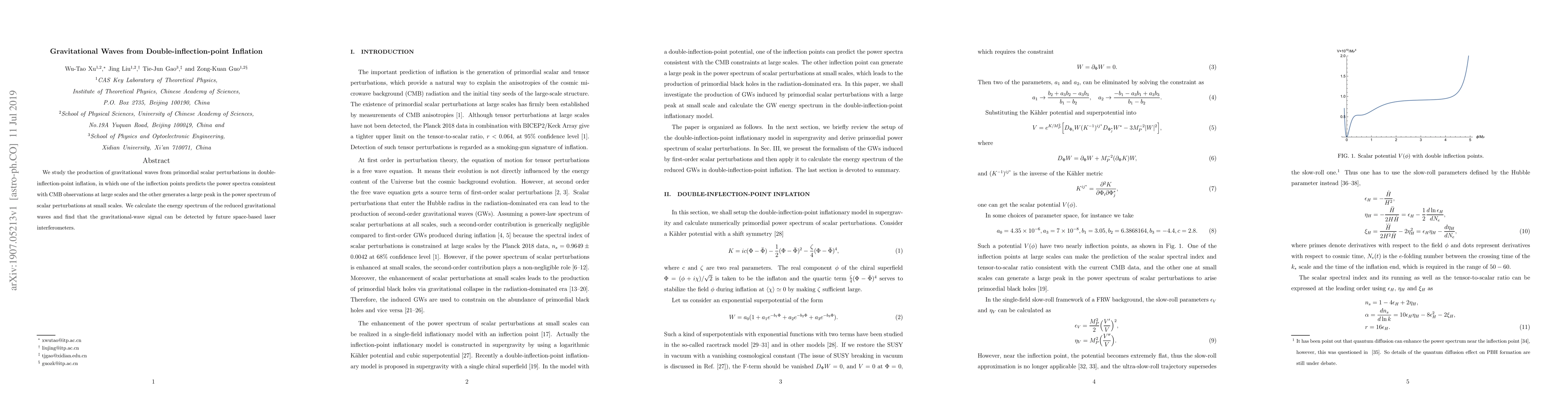 This paper investigates gravitational waves generated by primordial scalar perturbations in double-inflection-point inflation models, finding that low-frequency gravitational waves could be detected by future space-based laser interferometers. The model's inflection points align with CMB observations and predict a significant peak in scalar perturbations.