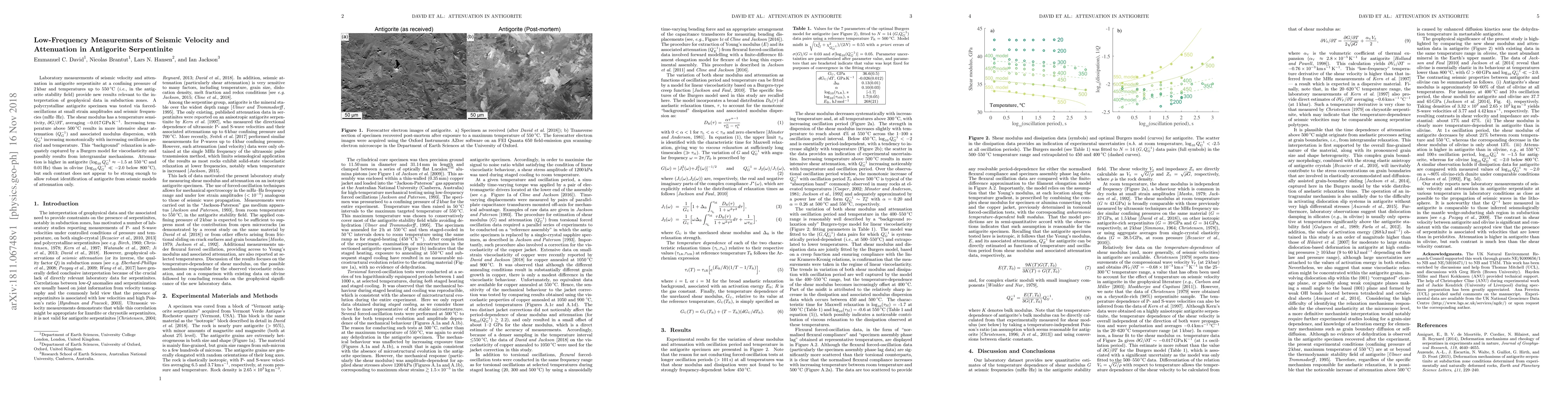 This study measures seismic velocity and attenuation in antigorite serpentinite under subduction zone conditions, revealing temperature-sensitive shear modulus and significant attenuation at $550^\circ$C. The findings suggest that while antigorite exhibits higher attenuation than olivine, it may not be identifiable solely based on seismic attenuation data.