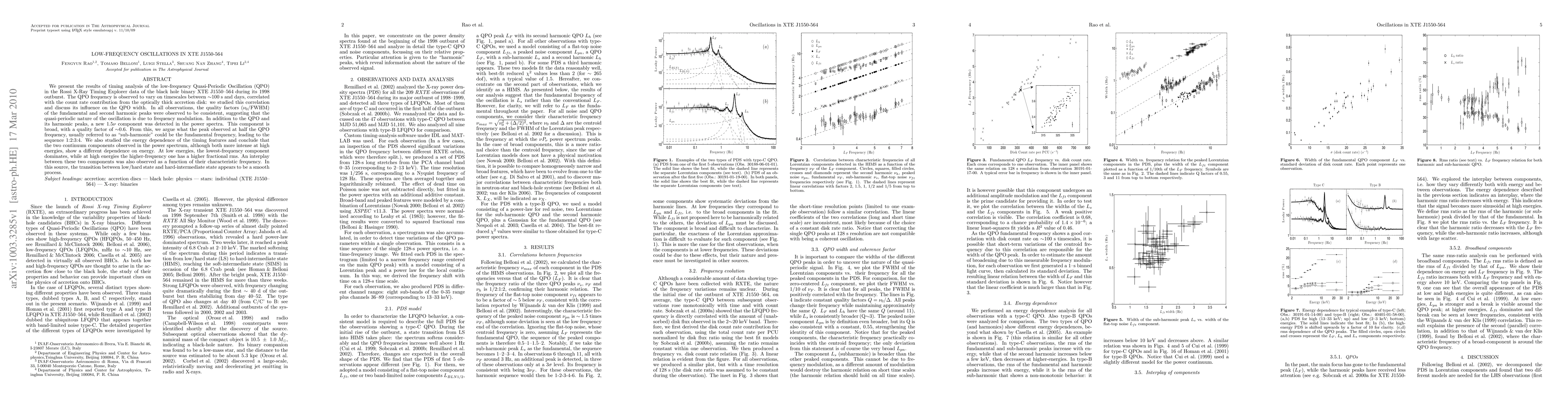 The study of XTE J1550-564's 1998 X-ray outburst revealed low-frequency Quasi-Periodic Oscillations (QPOs) varying with count rate. Fundamental and harmonic peaks had consistent quality factors, suggesting frequency modulation. A new 1.5ν component was detected, challenging the interpretation of a sub-harmonic at half QPO frequency. Two energy-dependent continuum components were identified, with their dominance shifting between low and high energies. The transition between low/hard and hard-intermediate states was found to be smooth.