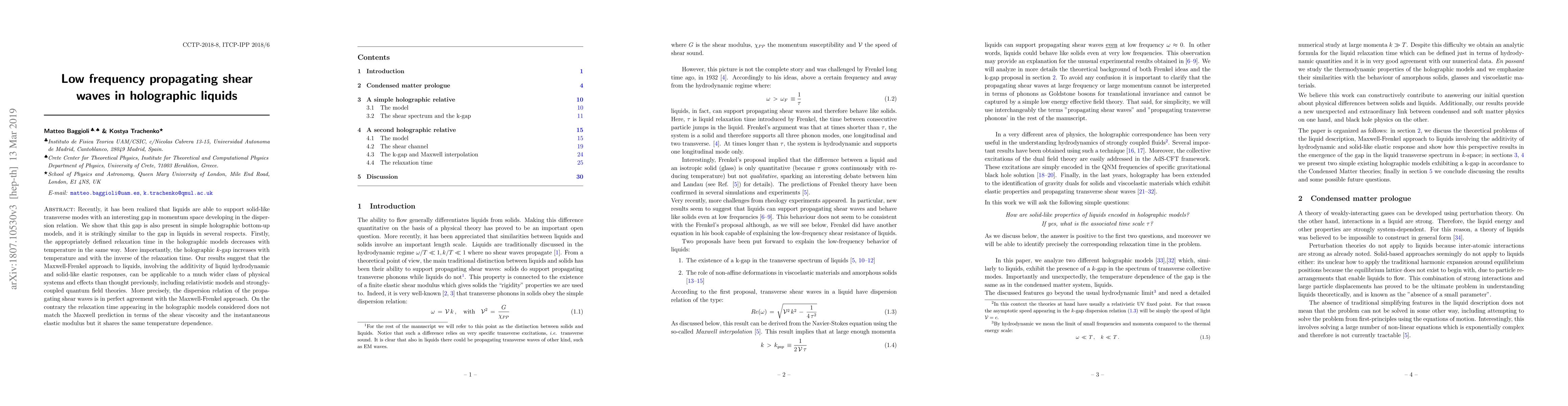 This research shows that holographic models exhibit a liquid-like transverse wave gap, matching temperature and relaxation time dependence observed in actual liquids. It suggests the broader applicability of the Maxwell-Frenkel approach to systems like relativistic models and strongly-coupled quantum field theories.