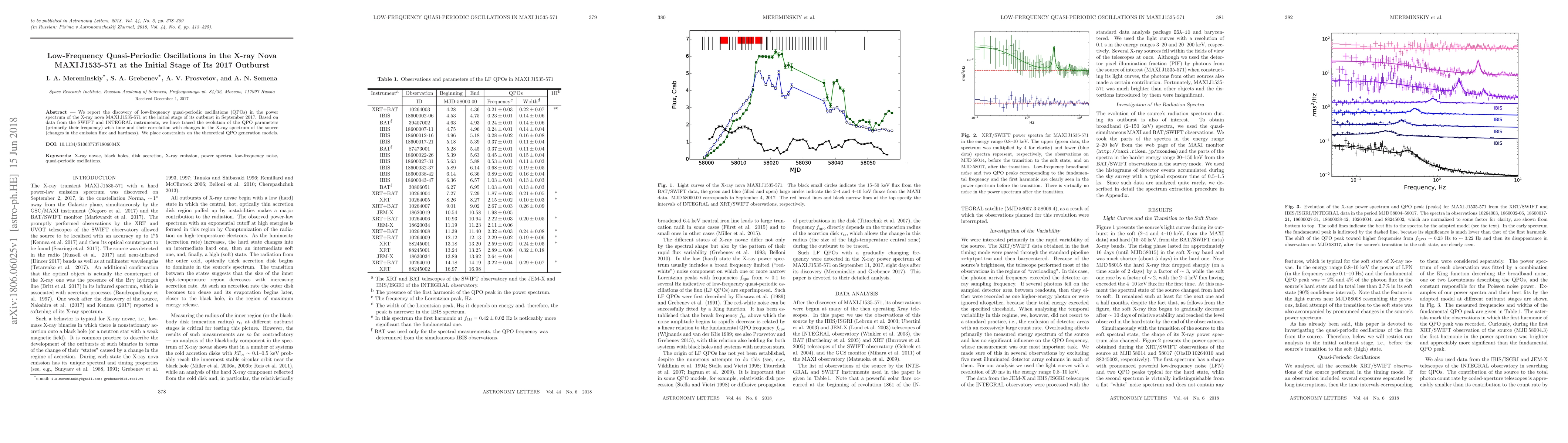 Researchers discovered low-frequency quasi-periodic oscillations in X-ray nova MAXI J1535-571 during its 2017 outburst, tracking their evolution over time.