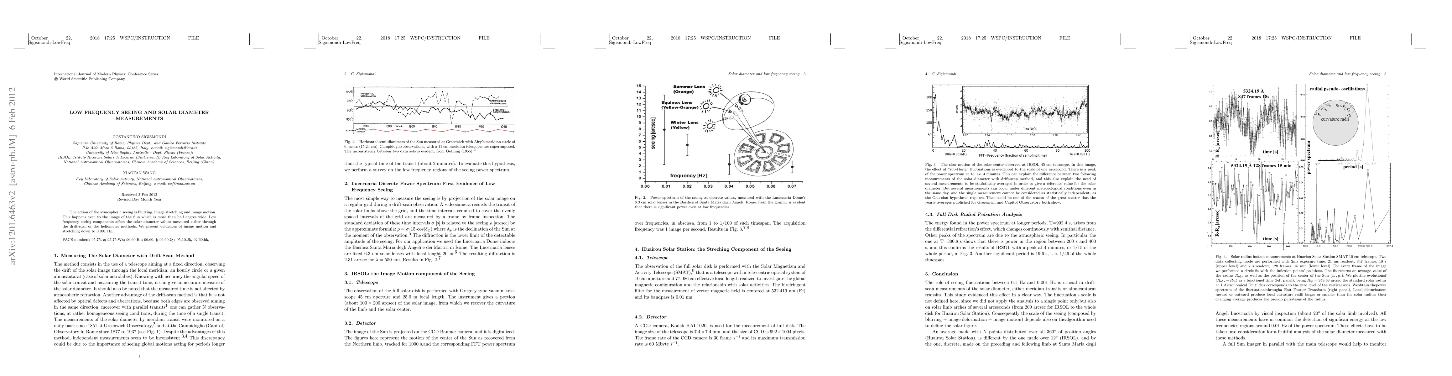 This research identifies low-frequency atmospheric seeing effects on solar diameter measurements, presenting evidence of image motion and stretching down to 0.001 Hz, impacting both drift-scan and heliometer methods.