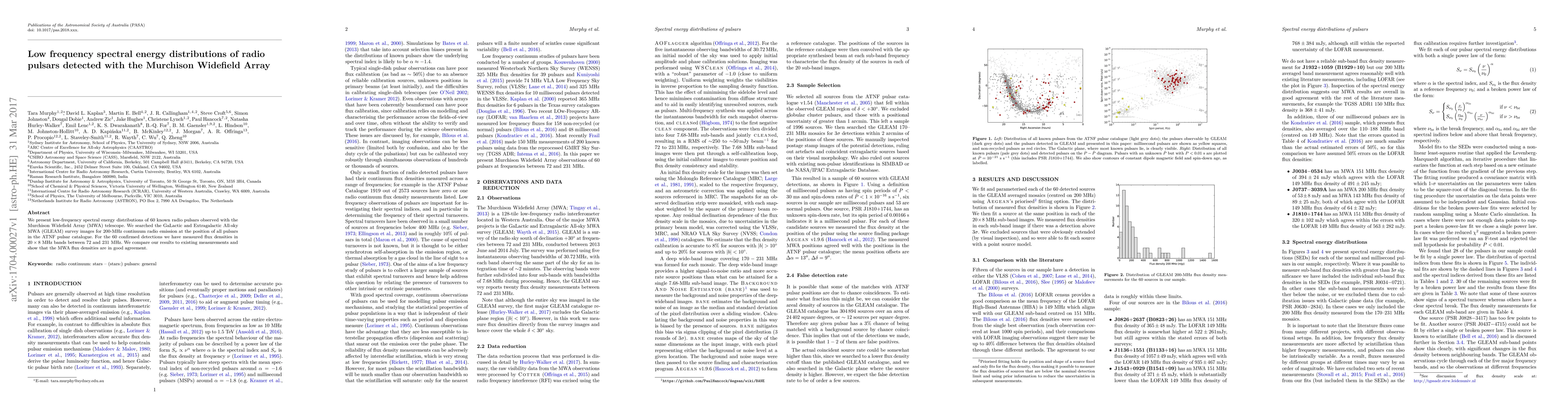 This study presents low-frequency spectral energy distributions for 60 radio pulsars detected using the Murchison Widefield Array (MWA). The research confirms detections from the GLEAM survey and measures flux densities across 20 x 8 MHz bands, finding good agreement with existing measurements.
