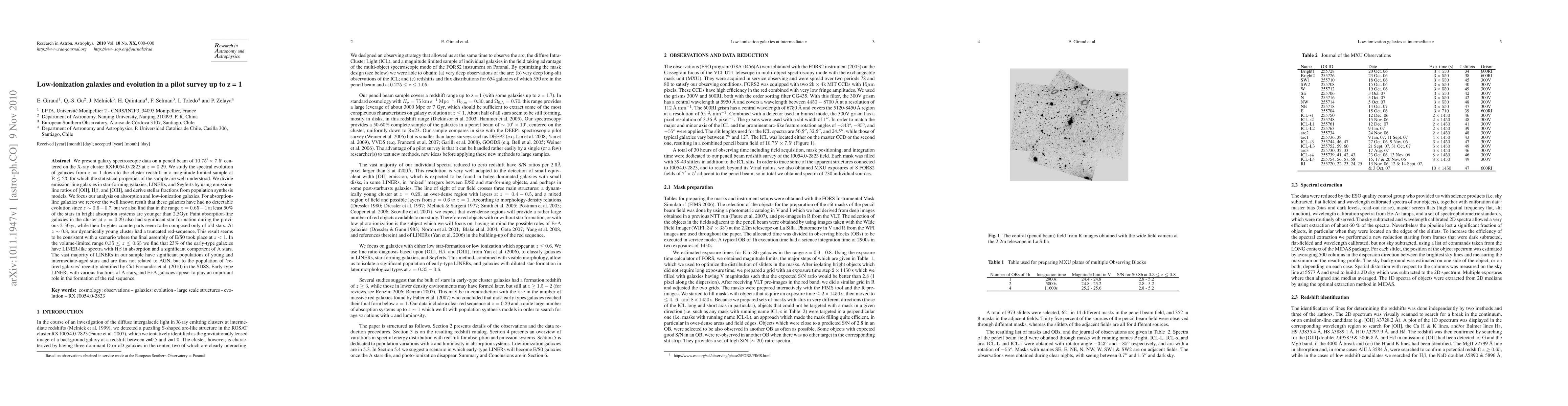 We present galaxy spectroscopic data on a pencil beam of $10.75' \times7.5'$ centered on the X-ray cluster RXJ0054.0-2823 at $z = 0.29$. We study the spectral evolution of galaxies from $z=1$ down to the cluster redshift in a magnitude-limited sample at $\rm R\leq23$, for which the statistical properties of the sample are well understood. We divide emission-line galaxies in star-forming galaxies, LINERs, and Seyferts by using emission-line ratios of [OII], $\rm H\beta$, and [OIII], and derive stellar fractions from population synthesis models. We focus our analysis on absorption and low-ionization galaxies. For absorption-line galaxies we recover the well known result that these galaxies have had no detectable evolution since $z\sim0.6-0.7$, but we also find that in the range $z=0.65-1$ at least 50% of the stars in bright absorption systems are younger than 2.5Gyr. Faint absorption-line galaxies in the cluster at $z = 0.29$ also had significant star formation during the previous 2-3Gyr, while their brighter counterparts seem to be composed only of old stars. At $z\sim0.8$, our dynamically young cluster had a truncated red-sequence. This result seems to be consistent with a scenario where the final assembly of E/S0 took place at $z<1$. In the volume-limited range $0.35\leq z\leq0.65$ we find that 23% of the early-type galaxies have LINER-like spectra with $\rm H\beta$ in absorption and a significant component of A stars. The vast majority of LINERs in our sample have significant populations of young and intermediate-aged stars and are thus not related to AGN, but to the population of `retired galaxies' recently identified by Cid-Fernandes et al. (2010) in the SDSS. Early-type LINERs with various fractions of A stars, and E+A galaxies appear to play an important role in the formation of the red sequence.