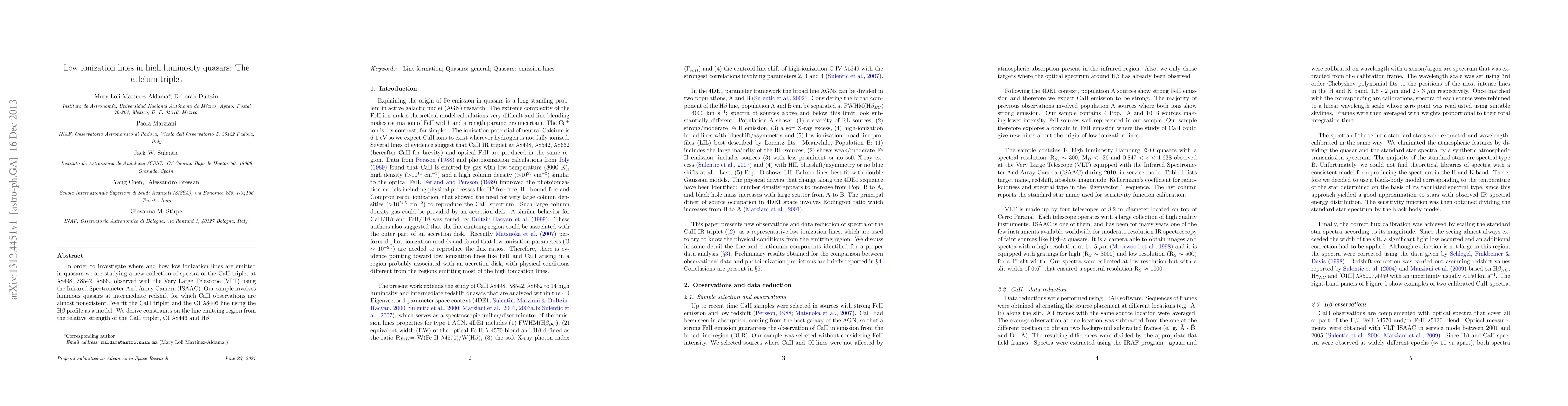 In order to investigate where and how low ionization lines are emitted in quasars we are studying a new collection of spectra of the CaII triplet at $\lambda$8498, $\lambda$8542, $\lambda$8662 observed with the Very Large Telescope (VLT) using the Infrared Spectrometer And Array Camera (ISAAC). Our sample involves luminous quasars at intermediate redshift for which CaII observations are almost nonexistent. We fit the CaII triplet and the OI $\lambda$8446 line using the H$\beta$ profile as a model. We derive constraints on the line emitting region from the relative strength of the CaII triplet, OI $\lambda$8446 and H$\beta$.