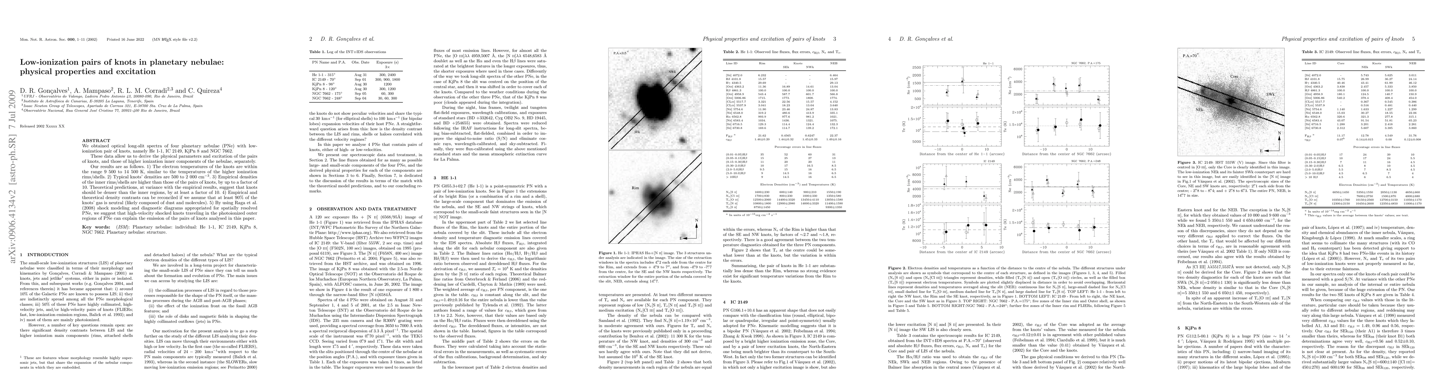 This study analyzes optical spectra of four planetary nebulae with low-ionization pairs of knots, revealing electron temperatures ranging from 9500 to 14500 K and densities from 500 to 2000 cm^{-3}. The findings suggest that knots may be predominantly neutral, reconciling empirical and theoretical density contrasts.
