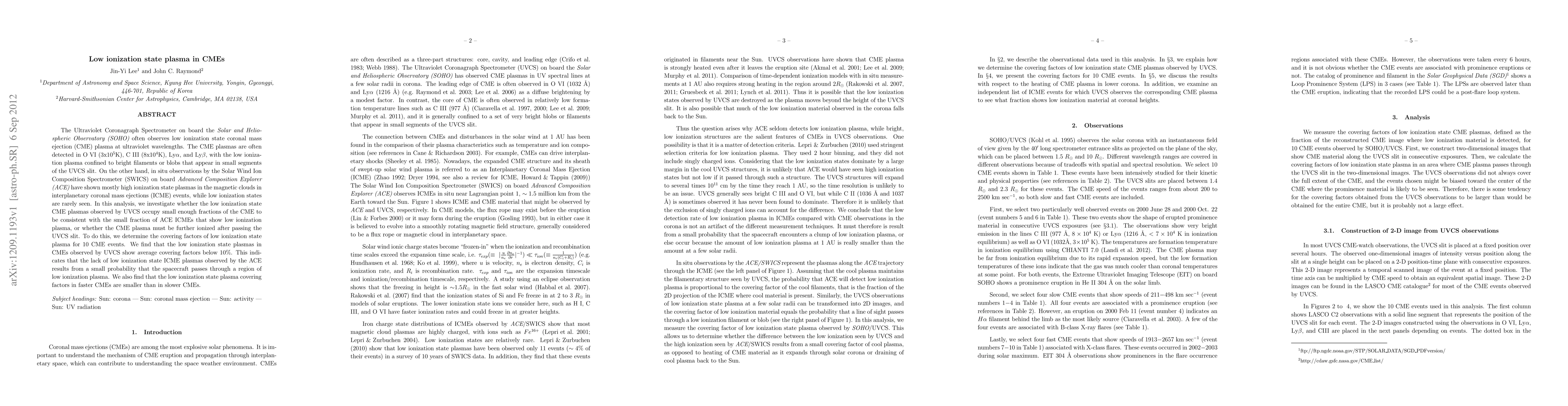 The Ultraviolet Coronagraph Spectrometer on board the Solar and Heliospheric Observatory (SOHO) often observes low ionization state coronal mass ejection (CME) plasma at ultraviolet wavelengths. The CME plasmas are often detected in O VI (3x10^5K), C III (8x10^4K), LyA, and LyB, with the low ionization plasma confined to bright filaments or blobs that appear in small segments of the UVCS slit. On the other hand, in situ observations by the Solar Wind Ion Composition Spectrometer (SWICS) on board Advanced Composition Explorer (ACE) have shown mostly high ionization state plasmas in the magnetic clouds in interplanetary coronal mass ejections (ICME) events, while low ionization states are rarely seen. In this analysis, we investigate whether the low ionization state CME plasmas observed by UVCS occupy small enough fractions of the CME to be consistent with the small fraction of ACE ICMEs that show low ionization plasma, or whether the CME plasma must be further ionized after passing the UVCS slit. To do this, we determine the covering factors of low ionization state plasma for 10 CME events. We find that the low ionization state plasmas in CMEs observed by UVCS show average covering factors below 10%. This indicates that the lack of low ionization state ICME plasmas observed by the ACE results from a small probability that the spacecraft passes through a region of low ionization plasma. We also find that the low ionization state plasma covering factors in faster CMEs are smaller than in slower CMEs.