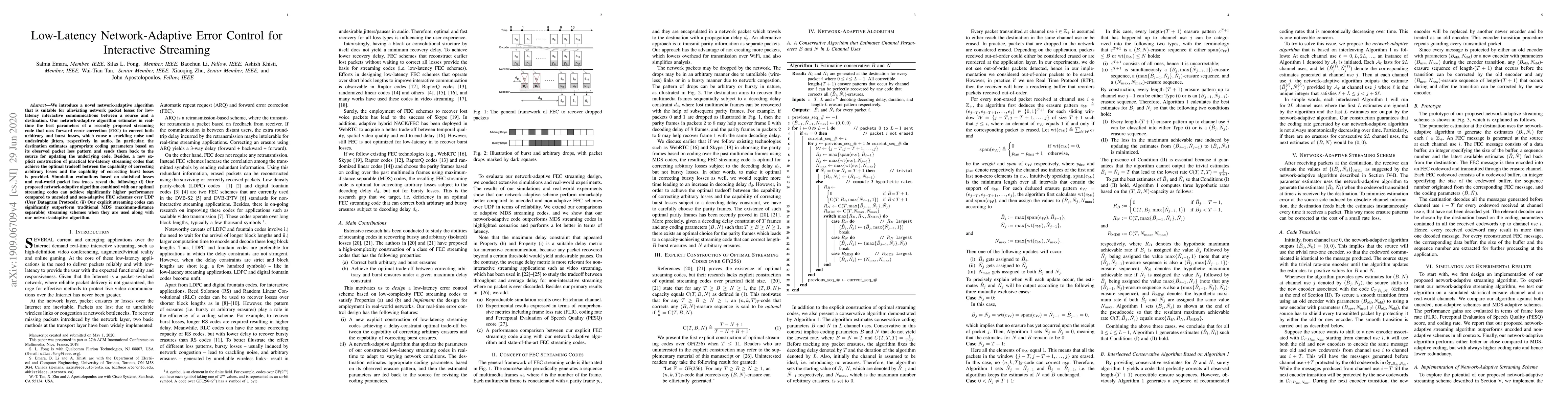The paper presents a novel network-adaptive algorithm and explicit construction of low-latency streaming codes, which effectively estimate and adapt to network conditions for correcting both arbitrary and burst losses in interactive streaming.
