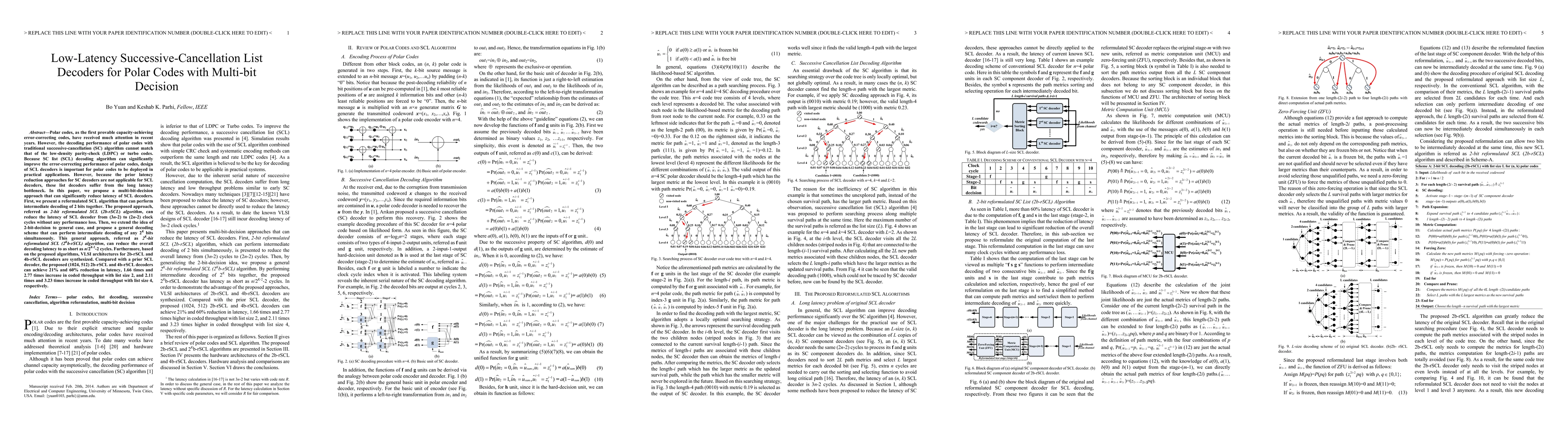 This paper proposes multi-bit decision approaches to reduce the latency of successive-cancellation list (SCL) decoders for polar codes, introducing the 2-bit reformulated SCL (2b-rSCL) algorithm to cut latency from (3n-2) to (2n-2) clock cycles and a general 2K-bit reformulated SCL (2Kb-rSCL) algorithm to further reduce latency to n/2K-2-2 cycles, achieving significant reductions in latency and increases in throughput.