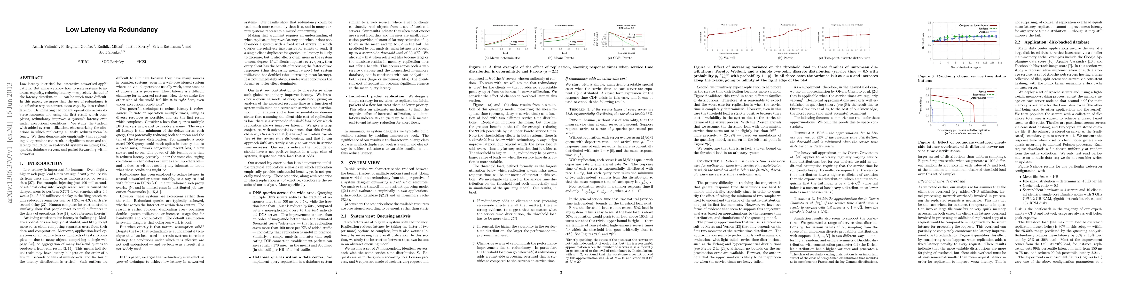 This paper proposes that redundancy across diverse resources can significantly reduce latency, especially in the tail of the latency distribution, for interactive networked applications. Empirical results show that replicating all operations can lead to substantial mean and tail latency reductions in systems like DNS queries, database servers, and network packet forwarding.