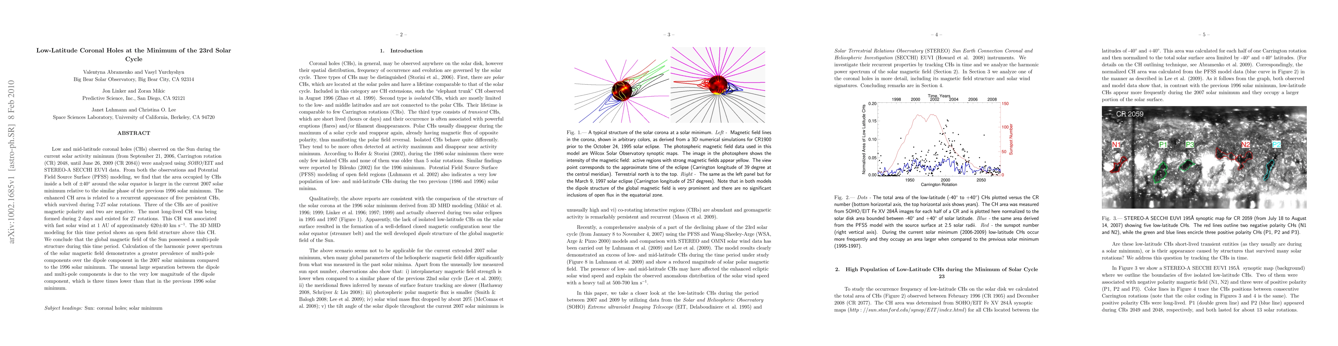 Scientists analyzed coronal holes near the Sun during its solar minimum in 2007 and found a larger area of low-latitude coronal holes compared to a similar phase in 1996, indicating a multi-pole structure in the Sun's magnetic field.