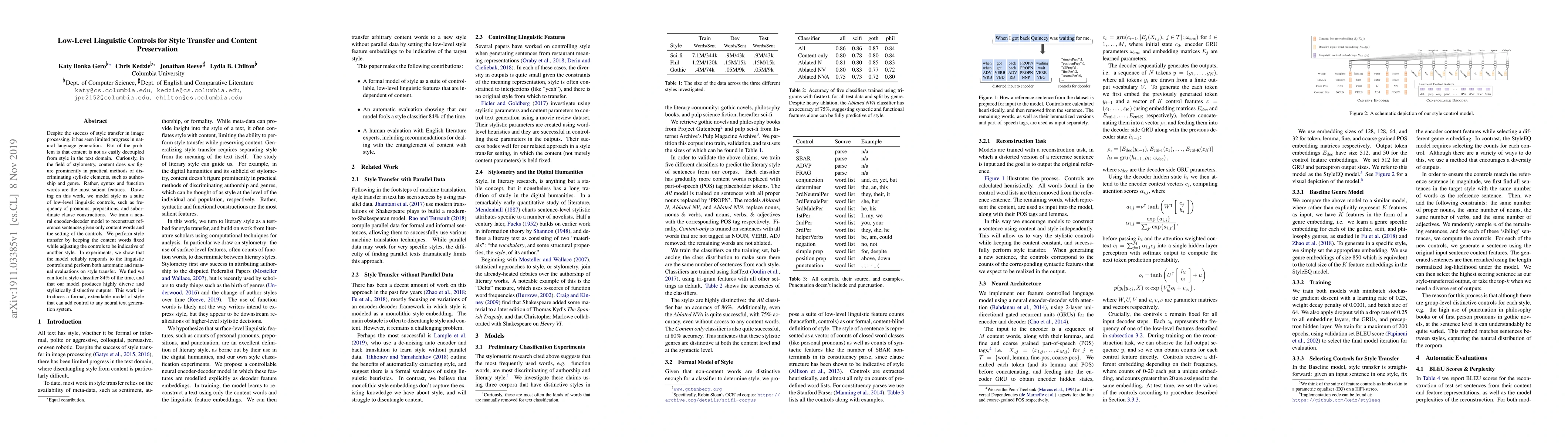 This paper proposes a neural encoder-decoder model for style transfer in natural language by using low-level linguistic controls, such as the frequency of function words and syntactic structures. The model successfully transfers style while preserving content, demonstrating high performance in fooling style classifiers and producing diverse outputs.