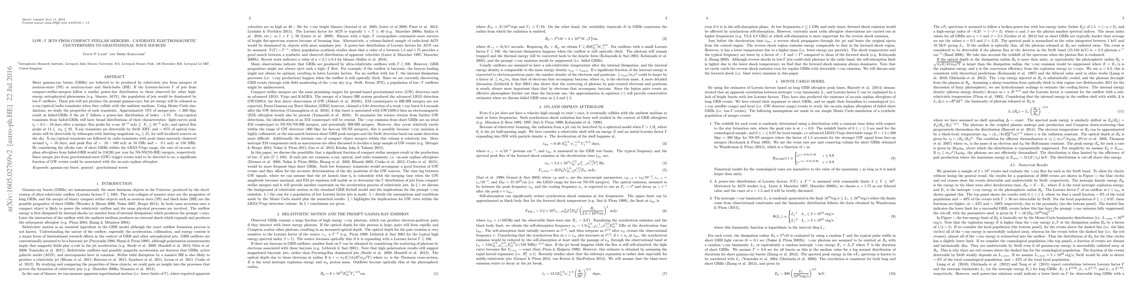 This paper investigates the electromagnetic counterparts of low Lorentz factor jets from compact stellar mergers, suggesting that such jets, which do not produce short gamma-ray bursts, emit detectable x-ray, optical, and radio transients. Using simulations, it estimates that 78% of these jets result in failed GRBs, with transients detectable by Swift XRT and ground-based telescopes.