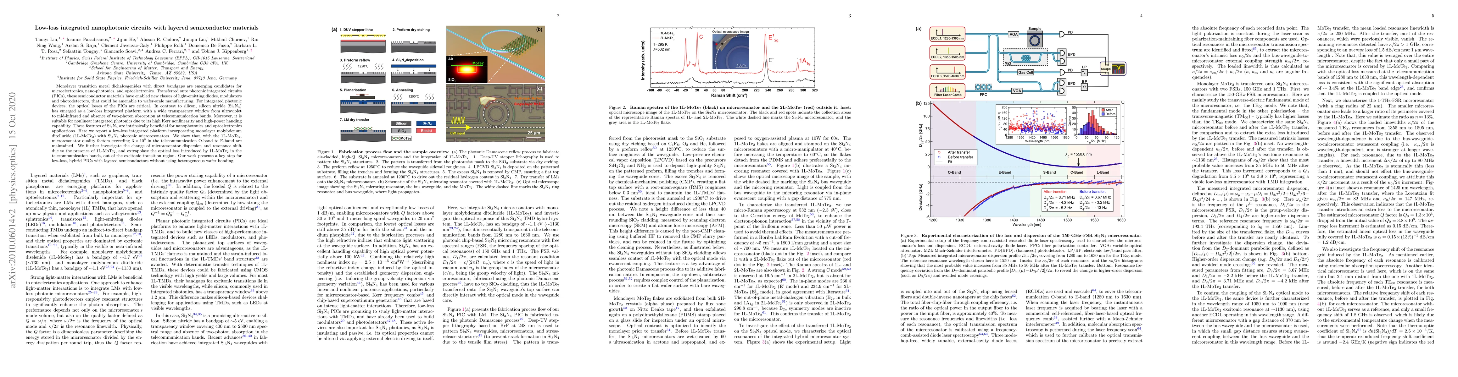 This paper reports the development of low-loss integrated nanophotonic circuits using monolayer molybdenum ditelluride (1L-MoTe2) with silicon nitride (Si3N4) photonic microresonators, achieving quality factors exceeding 3 million in the telecommunication bands. The study highlights the potential of this hybrid platform for advanced optoelectronics and nanophotonics applications.