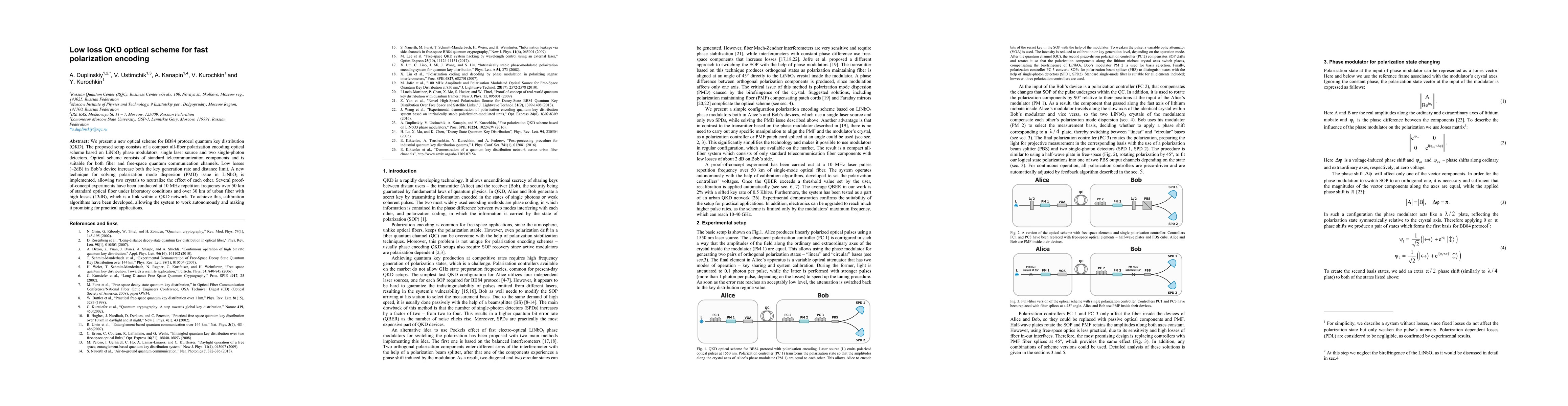 The research introduces a novel, low-loss optical scheme for BB84 quantum key distribution (QKD) using LiNbO3 phase modulators, a single laser, and two single-photon detectors. Experiments demonstrate successful implementation over 50 km fiber and 30 km urban fiber with high losses, showcasing potential for practical QKD applications.