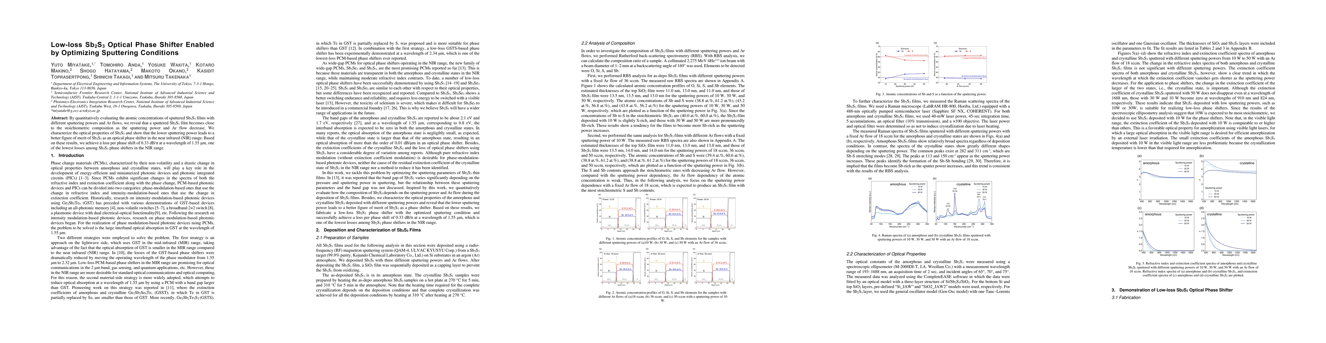 The paper presents an optimized low-loss Sb2S3 optical phase shifter achieved through careful control of sputtering conditions.